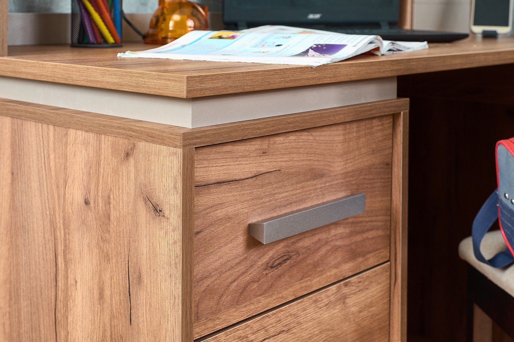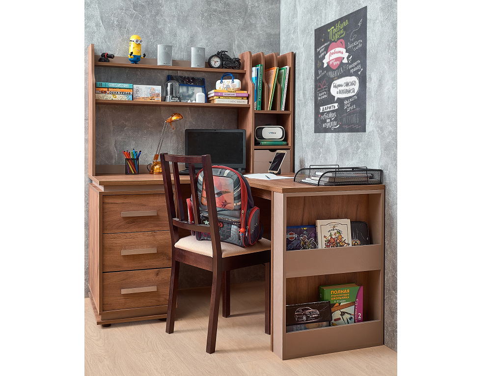 Коллекция для молодежной Натура в сочетании древесного декора Дуб Табачный и Мокко в тиснении лофт подойдет как для детей, так и для подростков. Мебель в трендовых декорах выглядит действительно круто! Мы постарались сделать молодежную Натура такой, чтобы детям любого пола и возраста было в их комнате удобно и комфортно. Особенности материалы: ЛДСП16 мм, кромка ПВХ0,45 мм, ЛДСП22 мм, кромка ПВХ2 мм выдвижные ящики на шариковых направляющих ручки из массива дерева левосторонняя и правосторонняя сборка