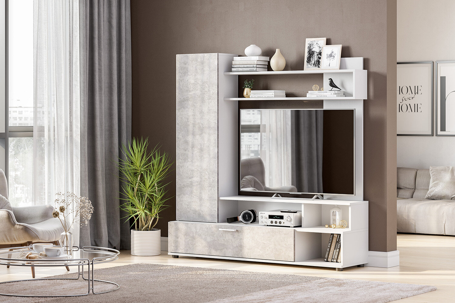 Стенка в гостиную МГС 9, белый/цемент светлый