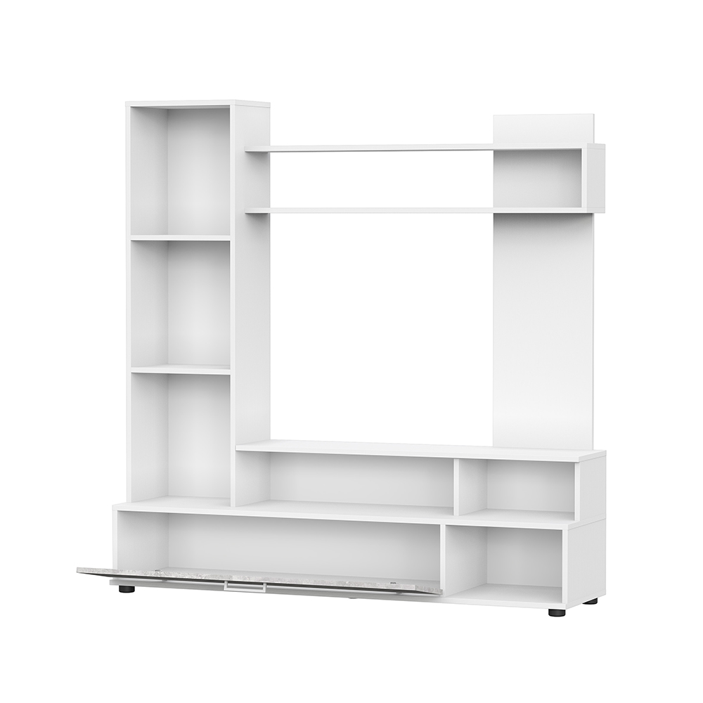 Компактный гарнитур для гостиной МГС 9 в цвете цемент светлый прекрасно впишется в современную обстановку. Модель отличается небольшим размером и обилием открытых зон хранения. Особенности: материал корпуса - ЛДСП белый материал фасада - ЛДСП цемент светлый Максимально допустимая нагрузка на полки — 5 кг. Сборка не универсальная!