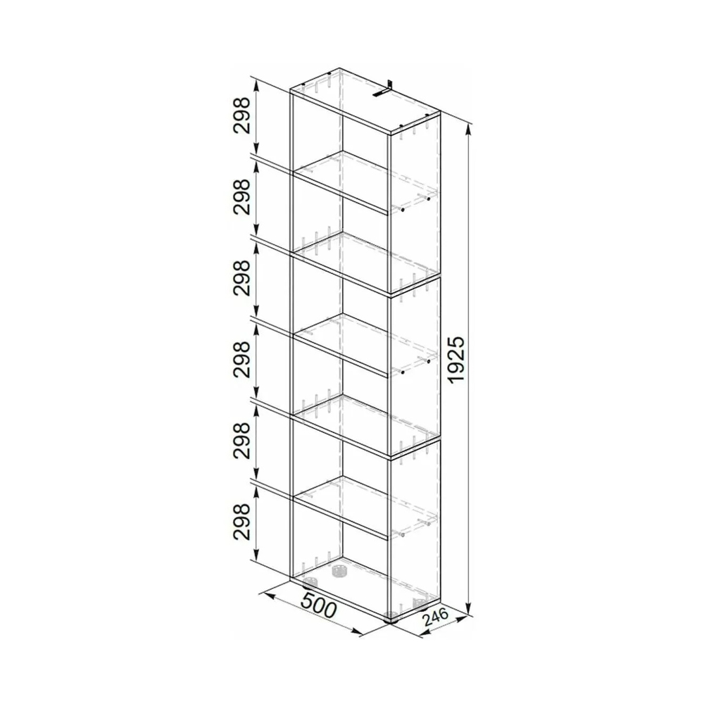 Стеллаж с полками Токио — это функциональный и стильный элемент мебели, способный дополнить любой интерьер. Он подойдет для хранения книг, декоративных предметов, фотографий и других личных вещей. Особенности: - Материал: ЛДСП - Опоры: Нерегулируемые, 25 мм. - Количество полок - 5 шт. - Максимальная нагрузка на полку - 5 кг.