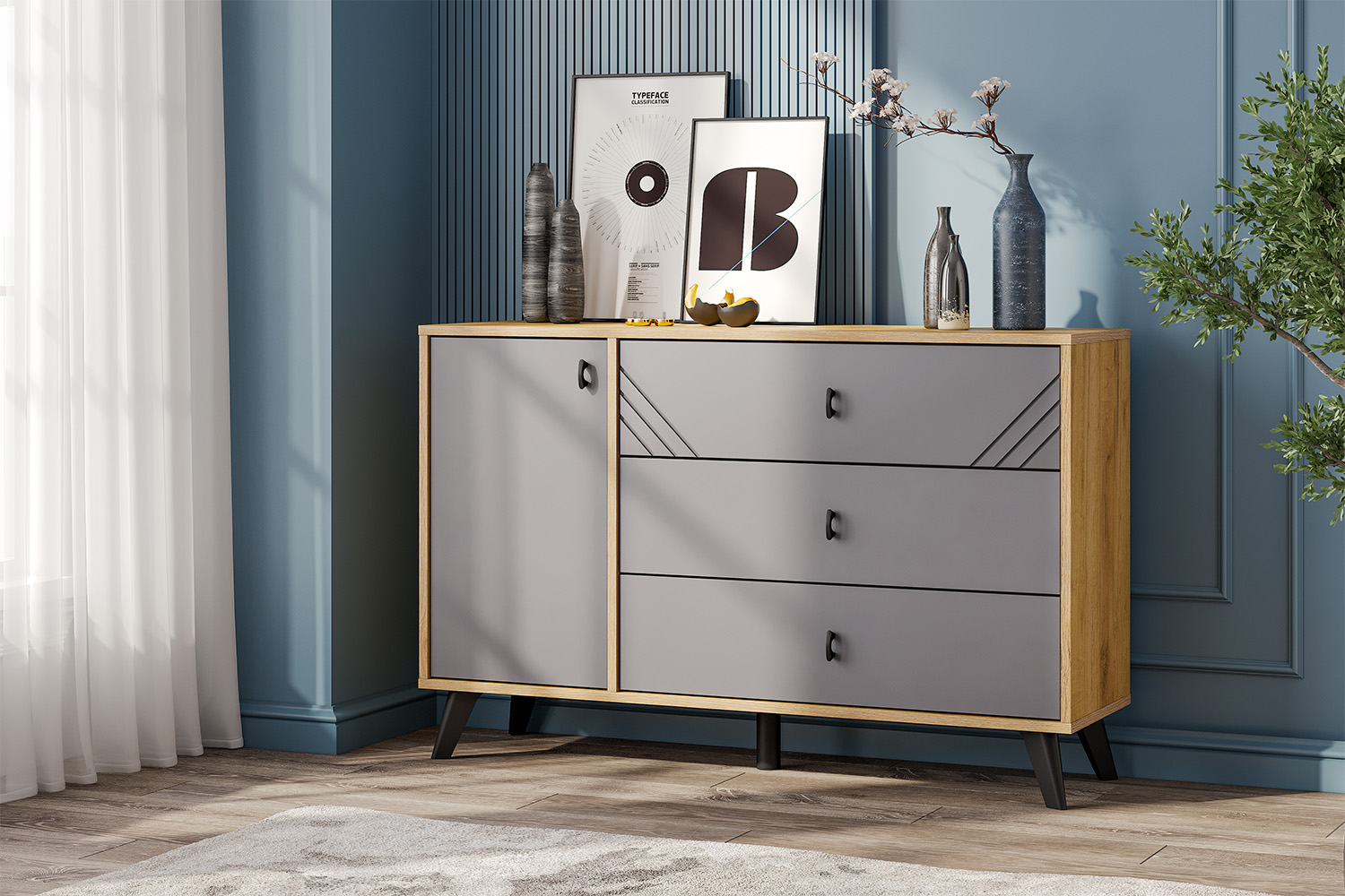 Комод 3 ящика Байкал (со створкой), Дуб Золотой, Графит