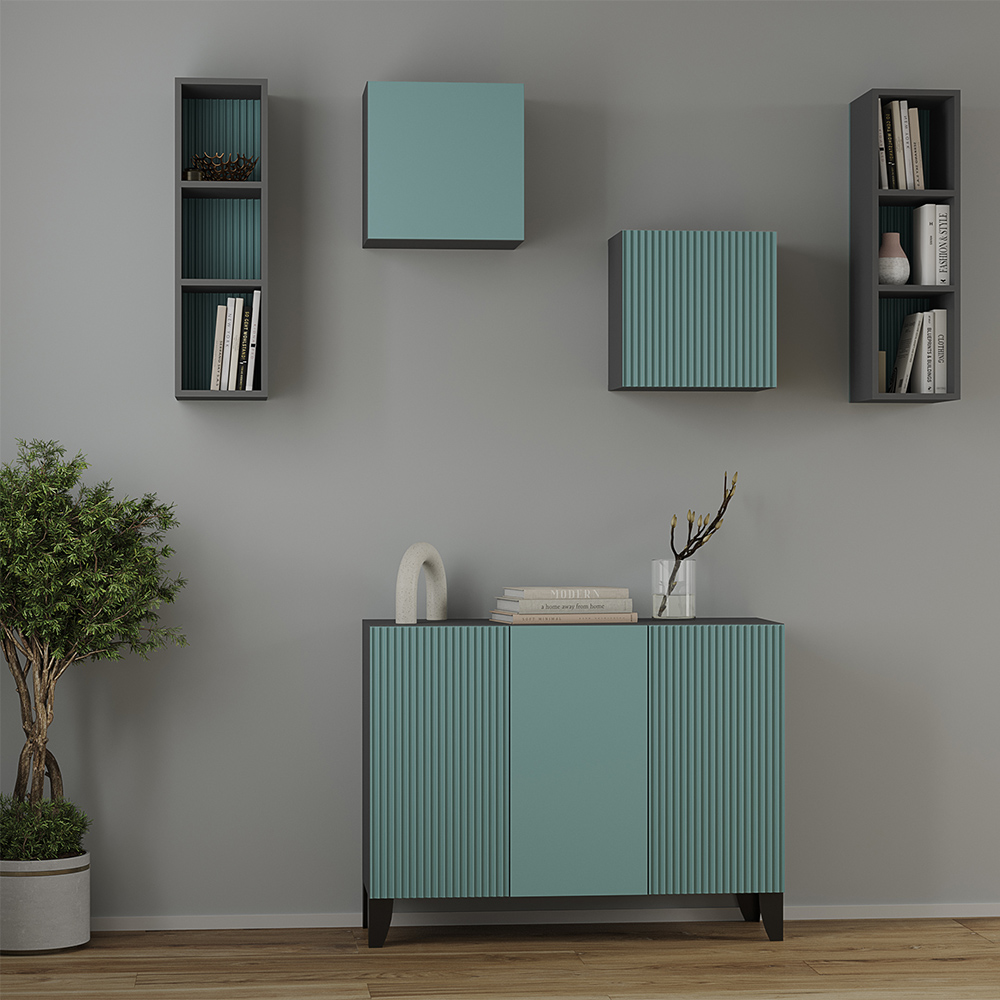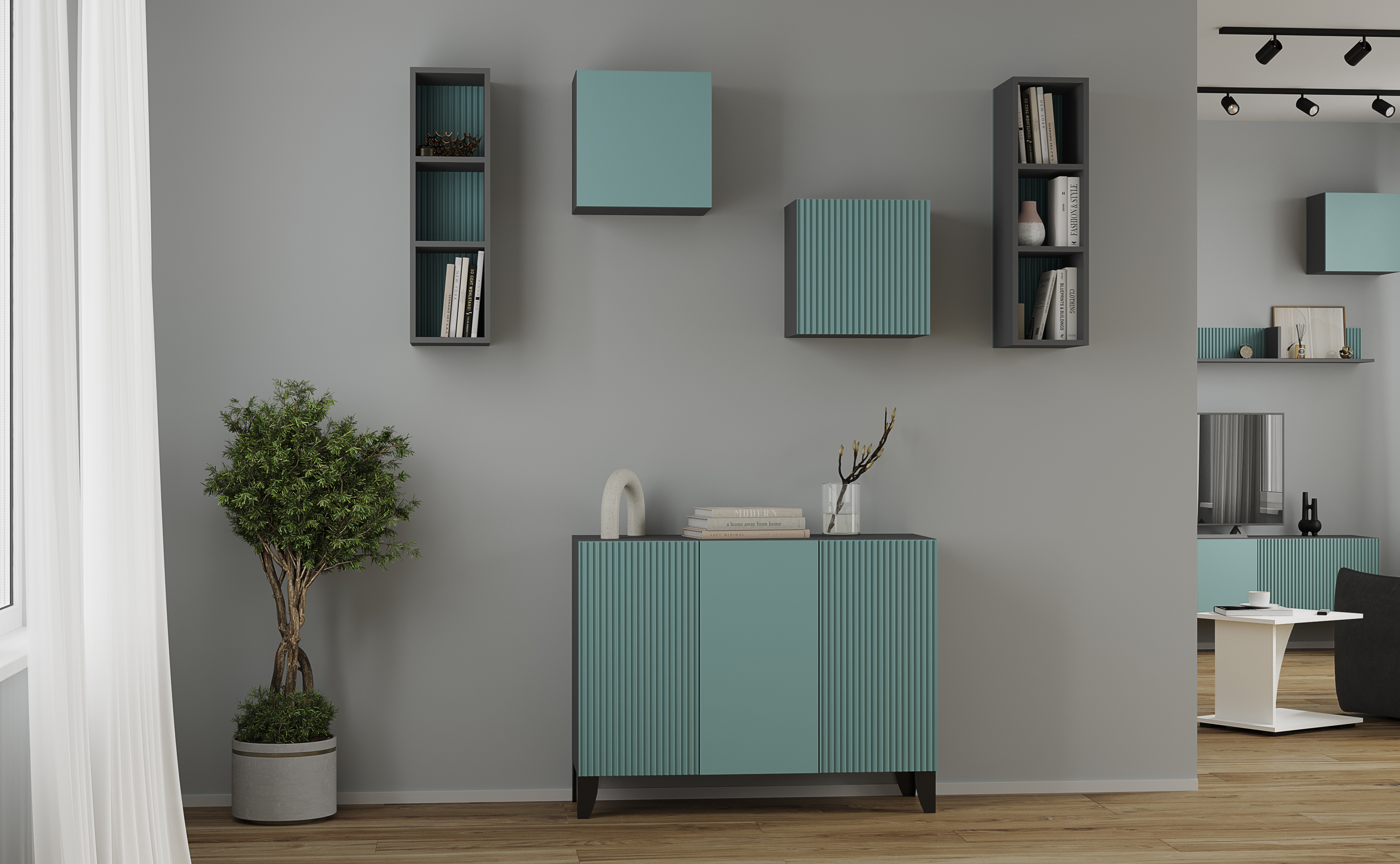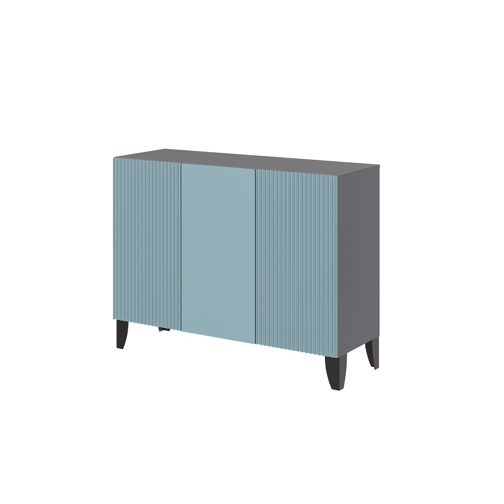 Дизайн комода Сириния отличается изысканностью и лаконичностью: трендовая вертикальная фрезеровка фасада гармонично смотрится в современном интерьере. Пространство за распашными дверями разделено полками, что позволит разместить аксессуары, книги и разноплановые вещи в любом помещении. Особенности корпус ЛДСП, серый графит фасад МДФ в пленке ПВХ, бриз петли без доводчиков опоры черные пластиковые роль ручек выполняют торцы фасадов высота ножек 125мм