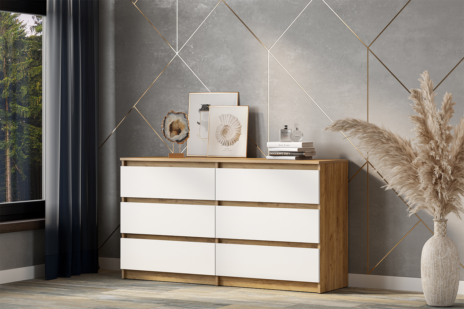 Комод с ящиками 1,38м Денвер, Дуб золотой, Белый