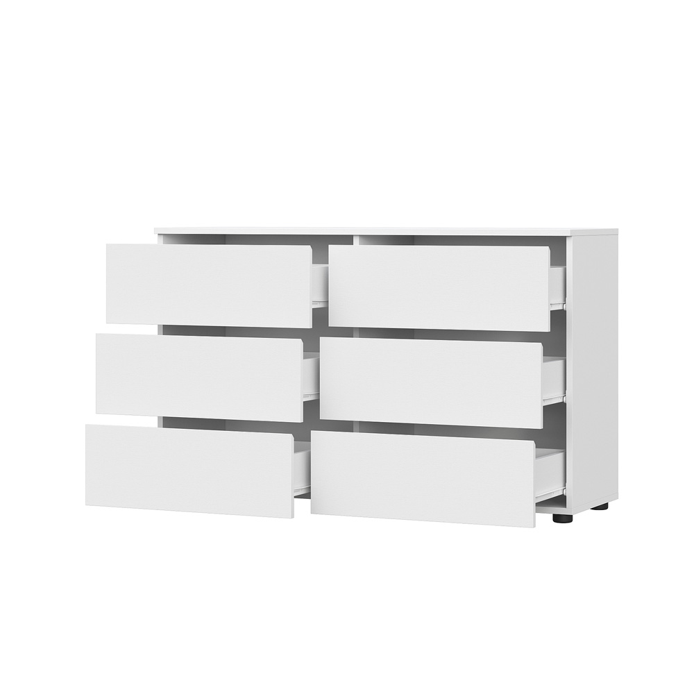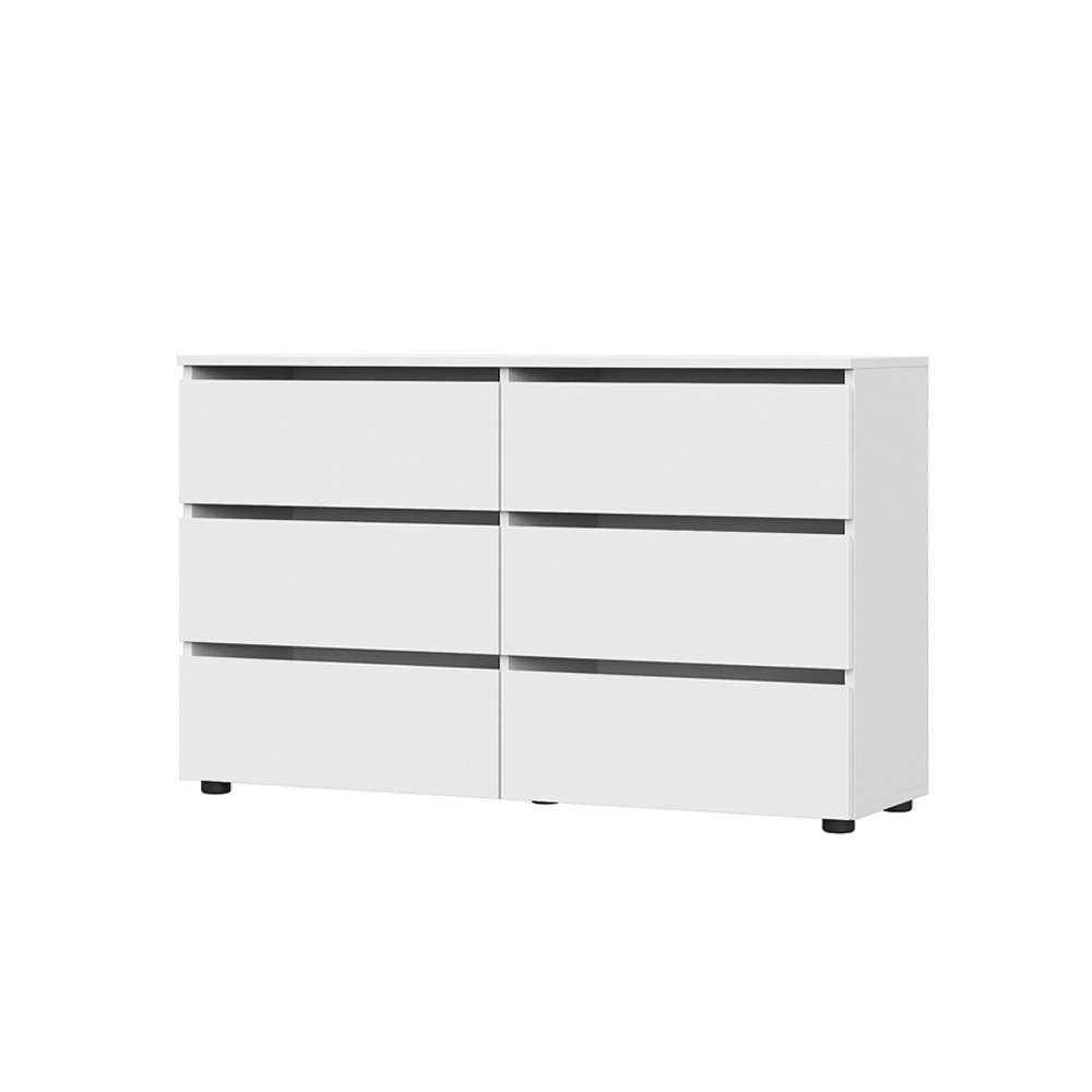 Комод из модульной серии Токио дополнит современный интерьер комнаты. Вместительные ящики позволят организовать место хранения белья и одежды, аксессуаров и других нужных предметов. Особенности: — Материал каркаса: ЛДСП — Материал фасада: ЛДСП — Количество ящиков: 6 шт. — Направляющие ящиков: Роликовые — Лицевая фурнитура отсутствует — Ящики открываются с помощью захвата рукой