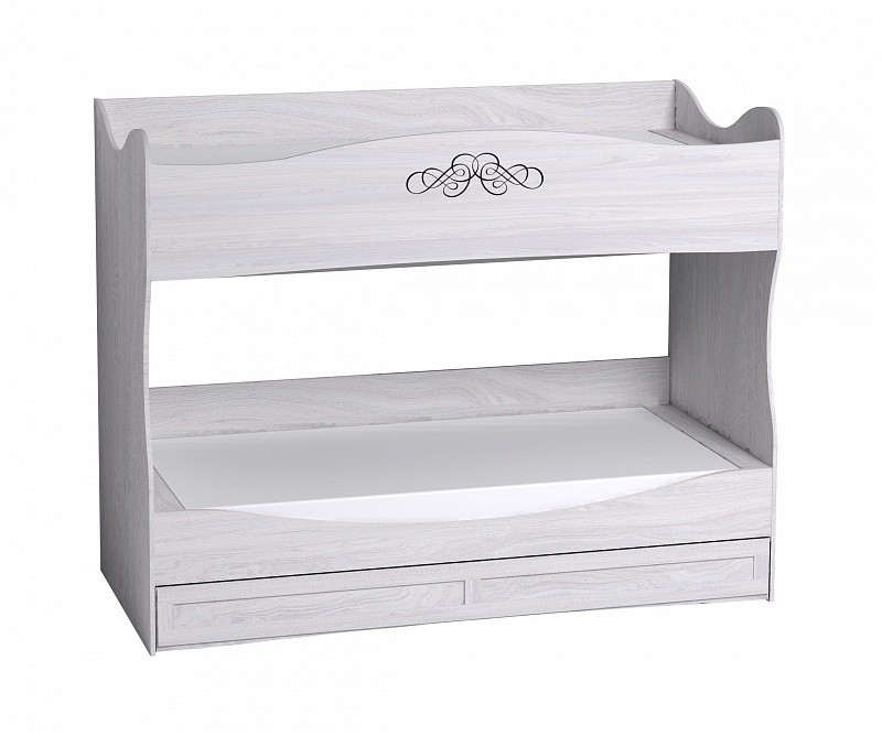 Отличным решением для многодетной семьи, позволяющее сэкономить место в квартире и создать уютный детский уголок, будет двухъярусная кровать АДЕЛЬ. Светлый декор Ясень Анкор светлый сделает детскую комнату просторнее и свежее, а стиль прованс добавит в атмосферу сказочности. Виньетки выполненные методом ультрафиолетовой печати придадут кровати красоты и изящества, а скругленные углы - обезопасят детей от ударов. Комплекс состоит из двух спальных мест и большого ящика на выкатных роликах. Верхний ярус оснащен защитной боковой спинкой, не позволяющей ребенку упасть во время сна или игр на 2-ом этаже. Дно спальных мест кроватей выполнено из ЛДСП и усилено специальными ребрами жесткости из фанеры 18 мм, что позволит выдержать нагрузку до 80 кг. Оптимальное расстояние между верхним и нижним ярусом кровати позволит ровно сидеть на постели как ребенку, так и взрослому. Кроме того, двухъярусная кровать АДЕЛЬ очень функциональна. Разложить любимые игрушки, будильник или лекарства, чтобы те были всегда под рукой,