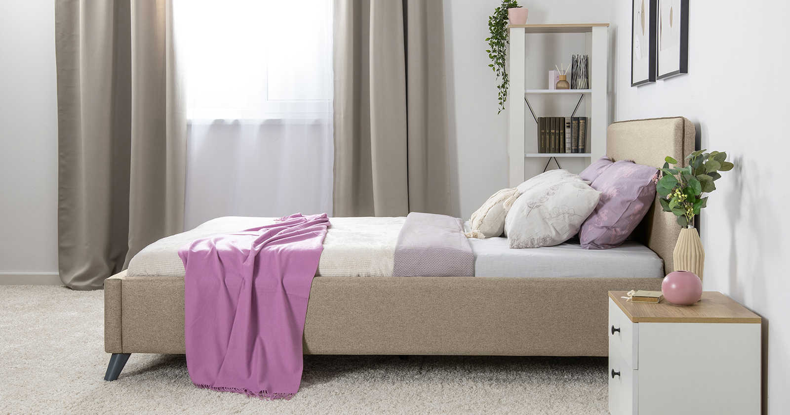 Лаконичный дизайн, гладкая и приятная на ощупь рогожка ярких или нейтральных цветов, высокие опоры – модная кровать МИА порадует сторонников скандинавского стиля. Особенности: — Каркас: ЛДСП — Опоры: пластик черный, высота 120 мм — Спальное место: 1600х2000 мм — Обивка: Купер (ткань) — Тип ткани: жаккард — Состав: полиэстер (PES) 100% — Скругленный торец изголовья оформлен контрастным кантом. — Задняя стенка изголовья выполнена в тех. ткани (спанбонд). — Подъемный механизм в комплекте Матрас в комплект не входит, приобретается отдельно, размер спального места 1600х2000 мм.