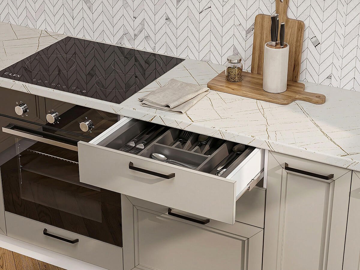 - Цвет фасадов: White Silk/Clay Silk