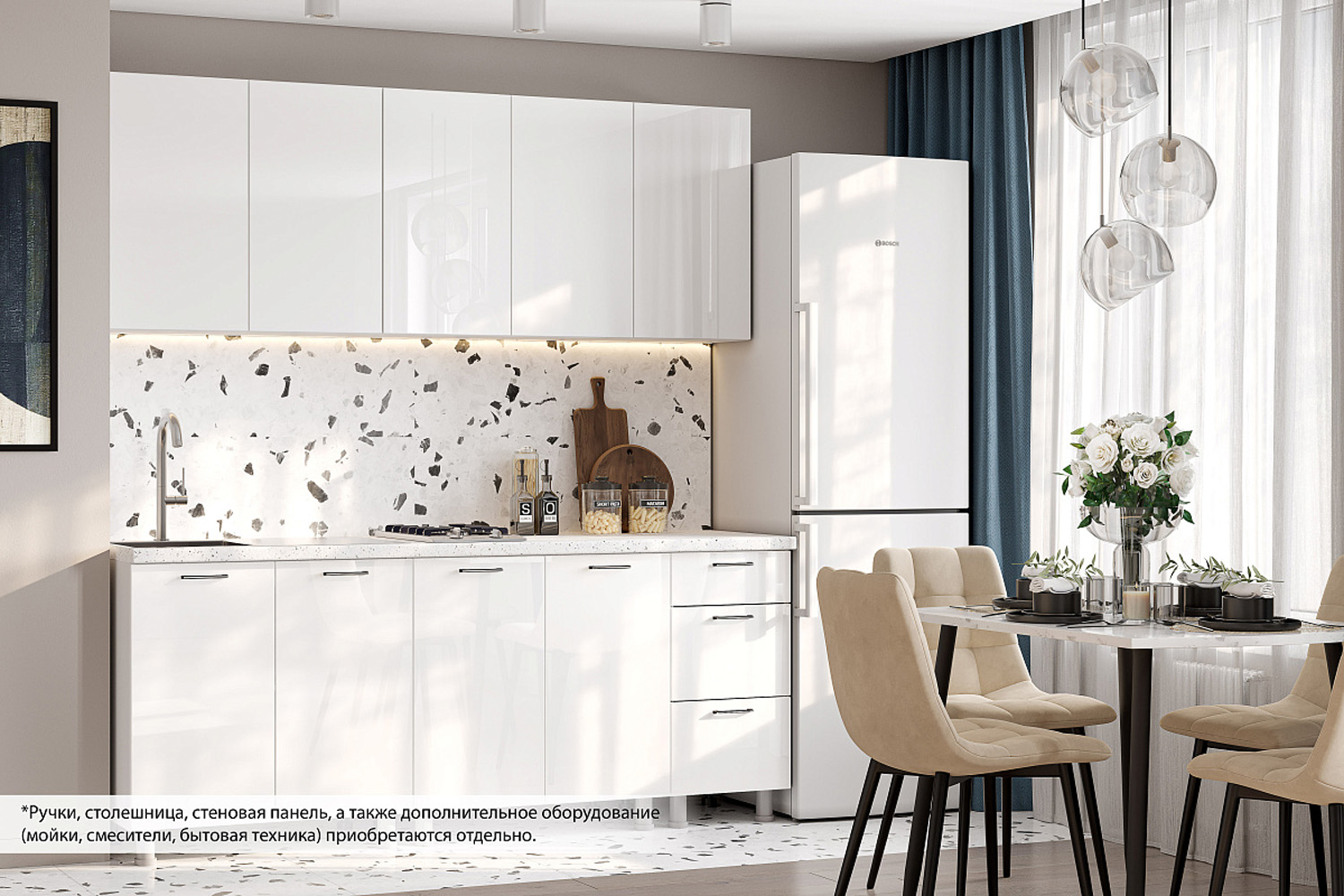 Готовая кухня Модерн New (без столешницы), Белый, Белый глянец