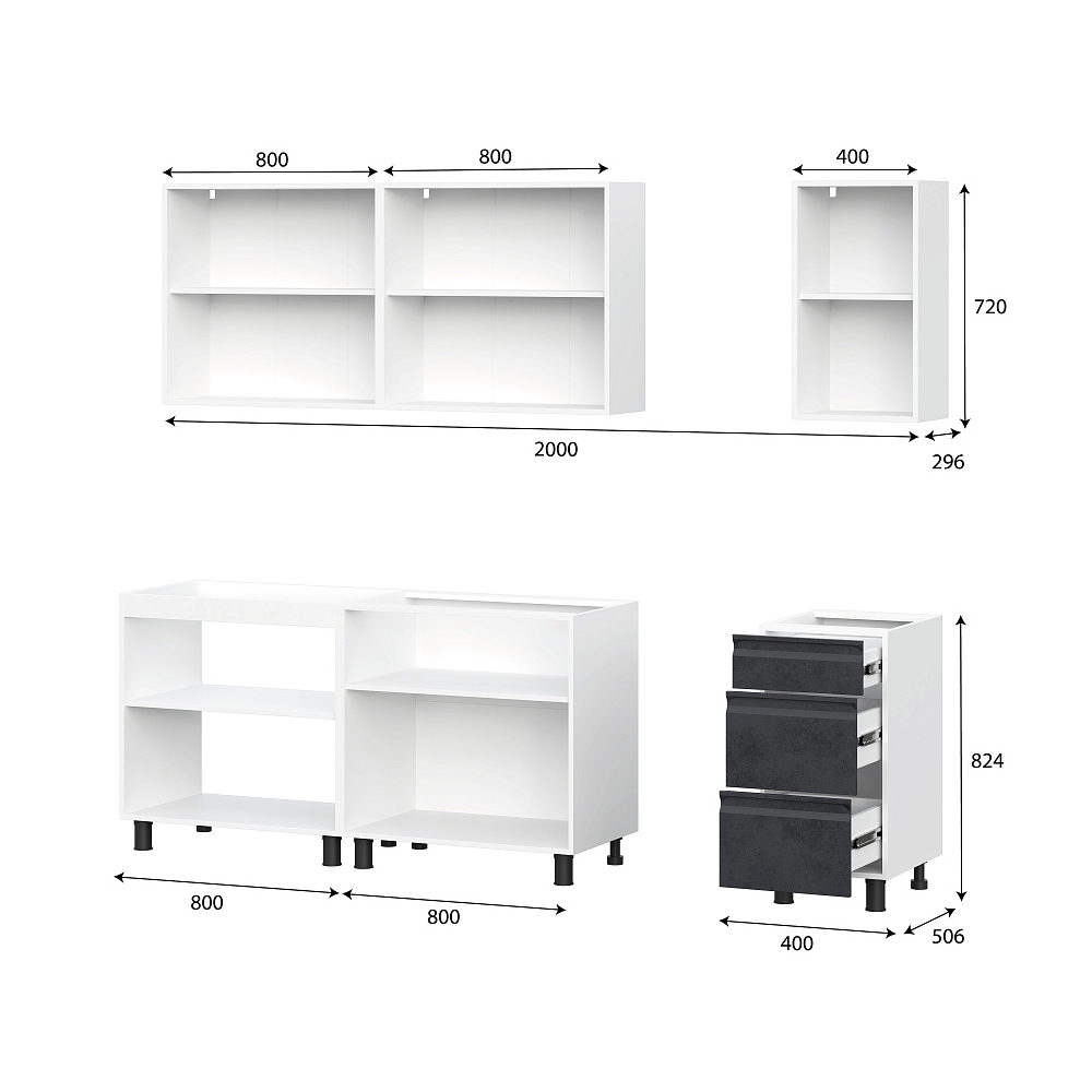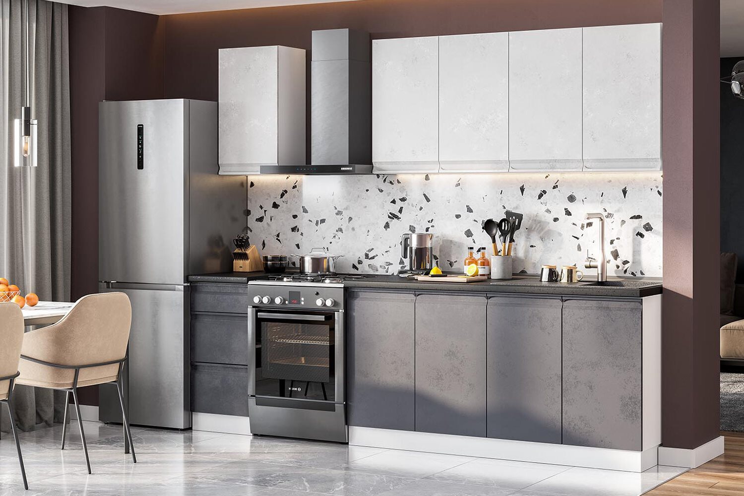 Кухонный гарнитур Вельвет 2.0 м (без столешницы), Белый, Бетон графит