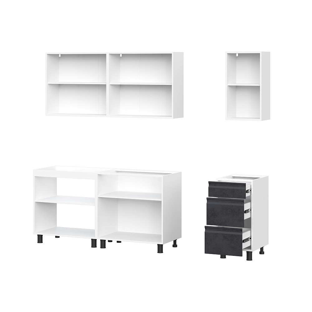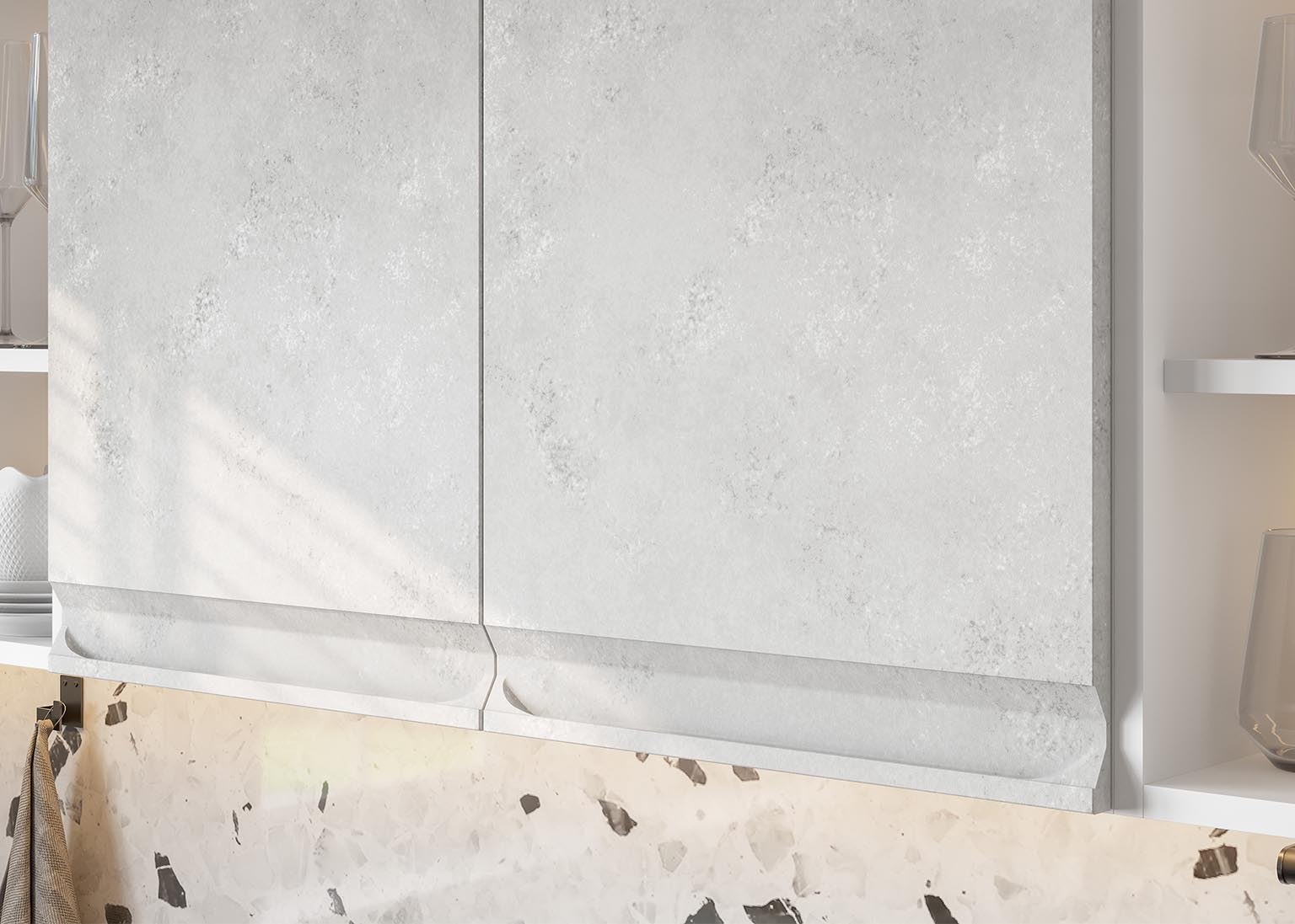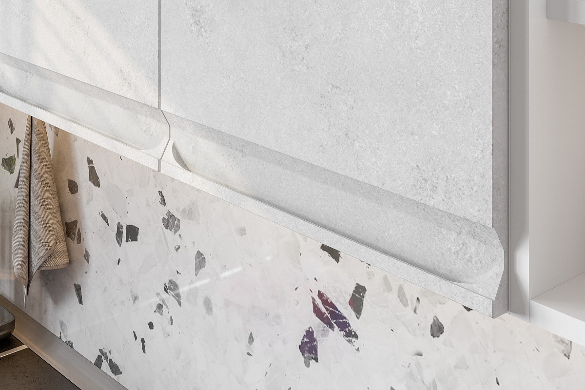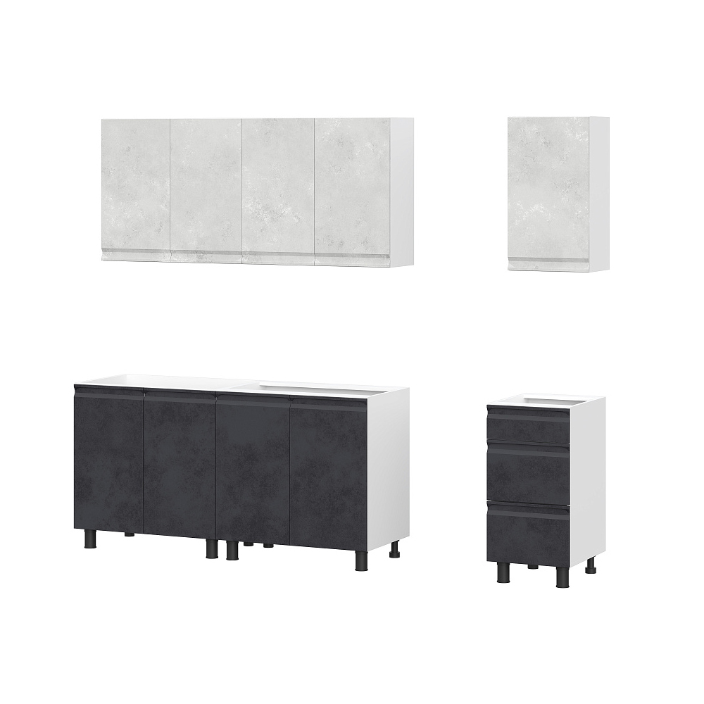 Модная в современном стиле кухня Вельвет с имитацией шлифованного бетона и матовым эффектом. Гладкие фасады без ручек визуально облегчают пространство и делают его более эстетичным. Внимание! Приобретаются отдельно столешница, стеновая панель, а также дополнительное оборудование (мойка, смеситель, бытовая техника). Особенности: - Материал фасада: МДФ, облицованный пленкой ПВХ - Цвет фасада: Бетон снежный / Бетон графит - Опоры можно регулировать по высоте.