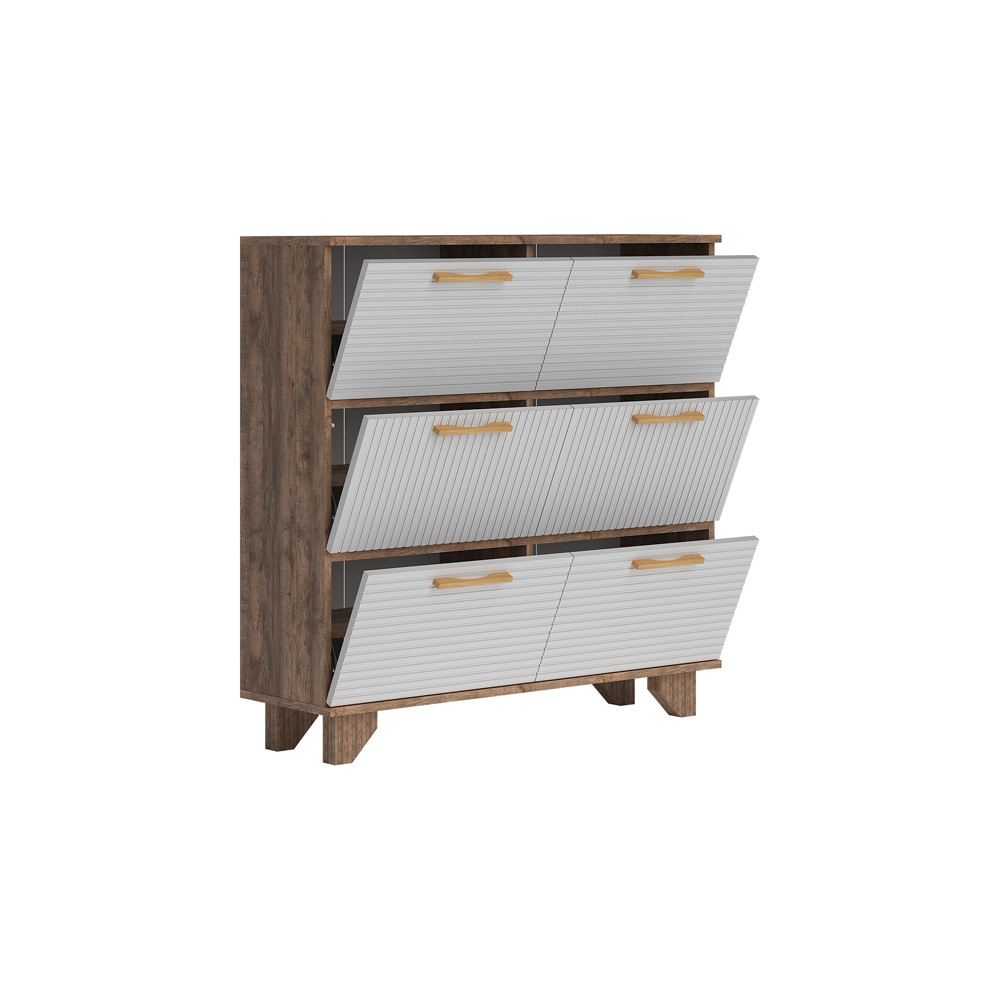 Обувница 1000.6 – это практичное и стильное решение для организации хранения обуви в вашем доме. Ее компактный дизайн позволяет разместить обувницу в прихожей или коридоре, оптимально используя доступное пространство. Особенности: — Материал корпуса: ЛДСП — Материал фасада: МДФ — Материал ручек: Массив дерева — Высота ножек/опор: 10 см.