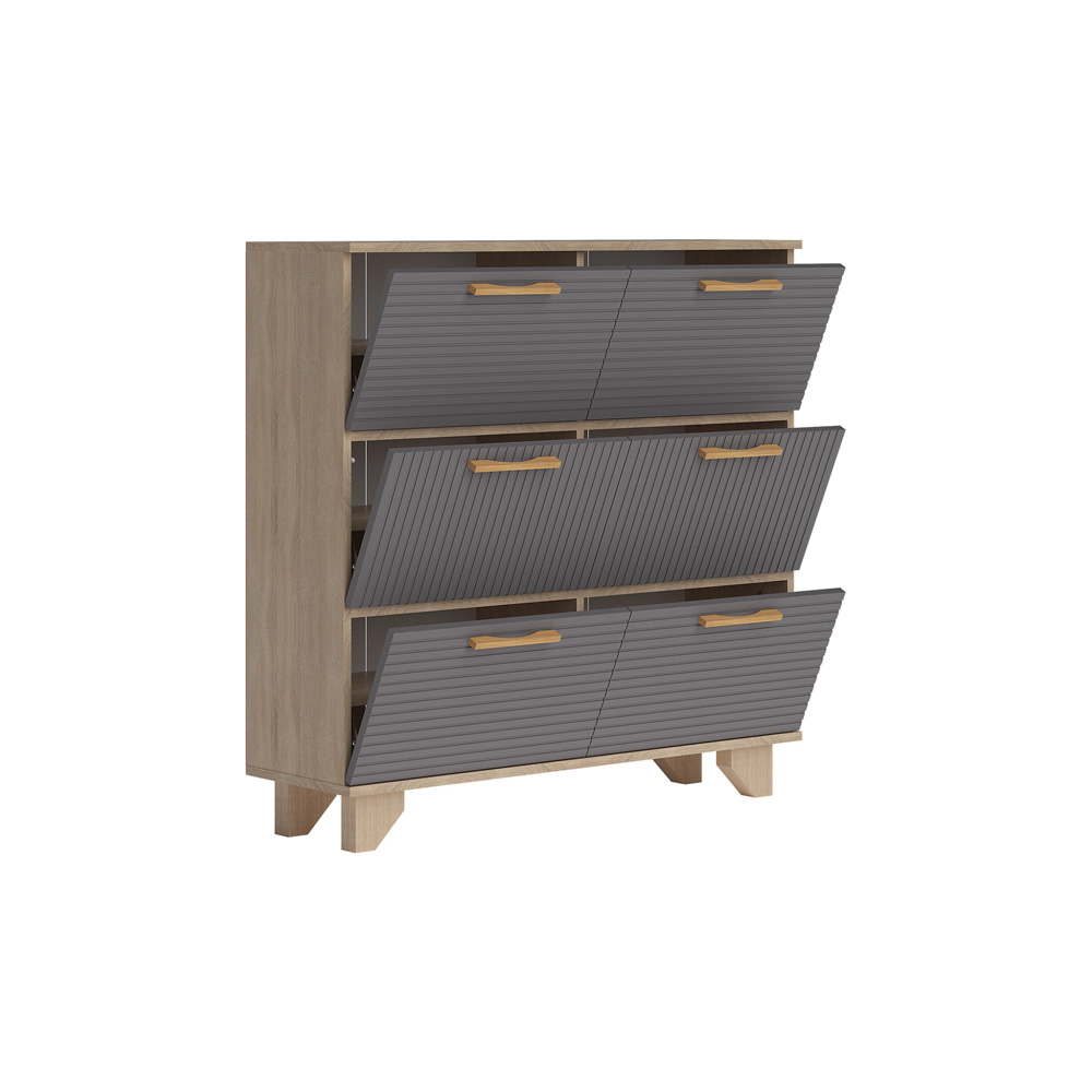 Обувница 1000.6 – это практичное и стильное решение для организации хранения обуви в вашем доме. Ее компактный дизайн позволяет разместить обувницу в прихожей или коридоре, оптимально используя доступное пространство. Особенности: — Материал корпуса: ЛДСП — Материал фасада: МДФ — Материал ручек: Массив дерева — Высота ножек/опор: 10 см.