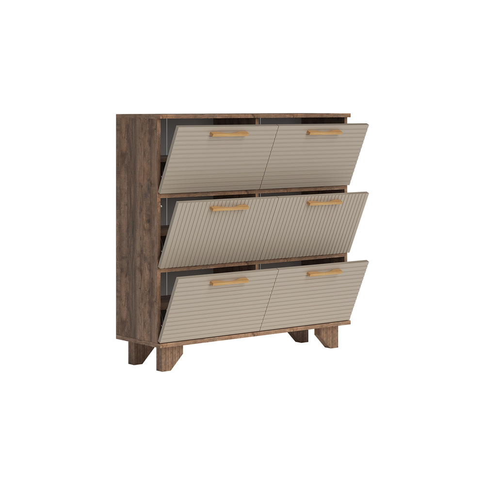 Обувница 1000.6 – это практичное и стильное решение для организации хранения обуви в вашем доме. Ее компактный дизайн позволяет разместить обувницу в прихожей или коридоре, оптимально используя доступное пространство. Особенности: — Материал корпуса: ЛДСП — Материал фасада: МДФ — Материал ручек: Массив дерева — Высота ножек/опор: 10 см.
