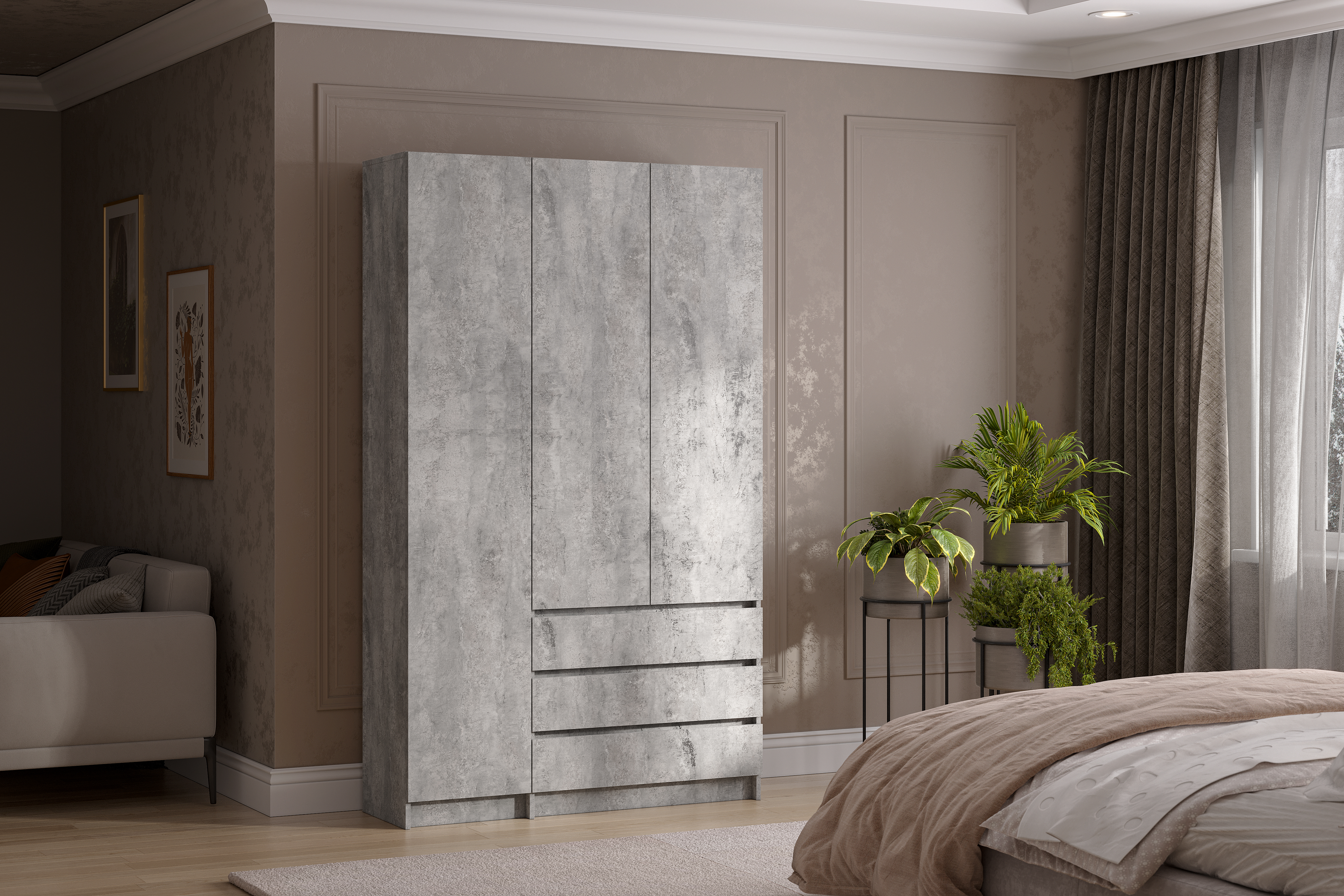 Шкаф трехстворчатый Бали, Цемент светлый