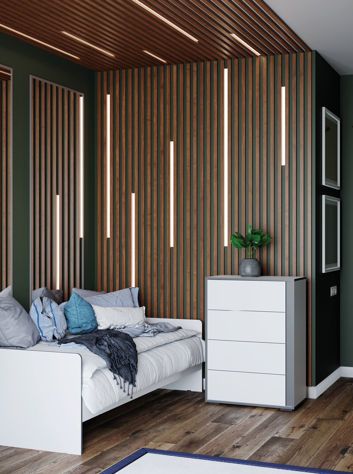 Декоративные рейки — это популярный элемент интерьера, который используется для украшения, зонирования и создания визуального объёма. Они изготовлены из МДФ 6 популярных цветах: Дуб Крафт Золотой, Белый, Сосна Карелия, Графит Серый, Орех Донской, Дуб Сонома. Декоративные рейки могут быть установлены на потолке, стенах или перегородках, создавая неповторимый дизайн помещения. Монтаж достаточно прост, крепятся рейки к стене при помощи монтажных планок, предварительно возможно установить выравнивающую панель из МДФ, она есть так же в 6 цветовых решениях. В комплекте входит 50 декоративных реек. Габаритные размеры ШхГхВ: 30х22х2800 мм