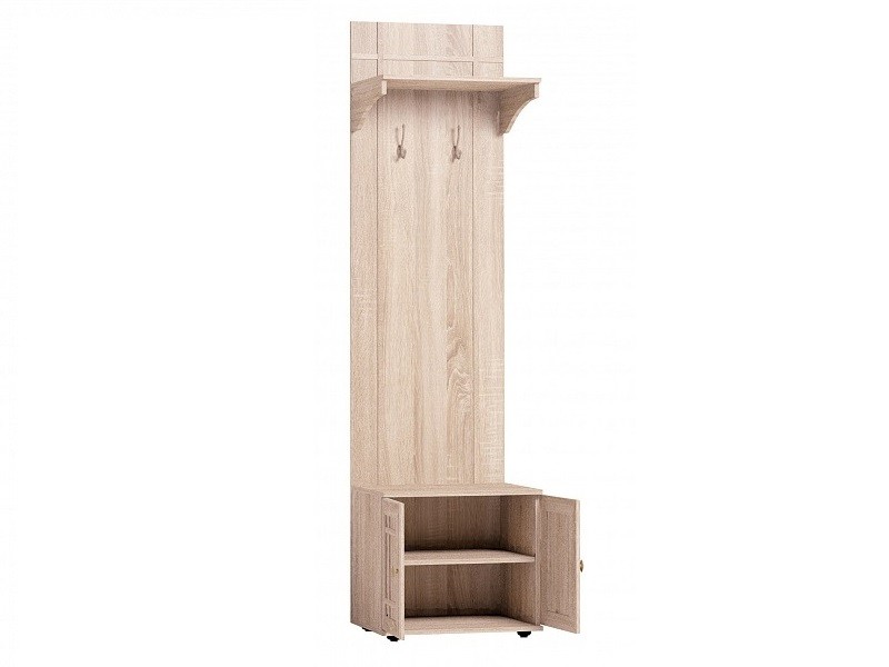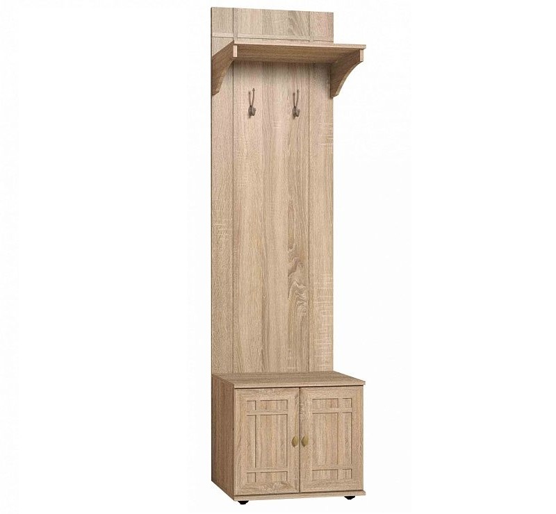 Современные квартиры отличаются, кроме всего прочего, малогабаритными прихожими. Но это не проблема, ведь в нишу шириной менее 60 см поместятся верхняя одежда на крючках, несколько пар обуви и сезонные аксессуары. Всего одна стойка-вешалка решит вопрос грамотной организации хранения во входной зоне без загромождения пространства. Для максимальной безопасности рекомендуется крепление к стене за подвесы. Особенности ЛДСП 16 мм, профиль МДФ, кромка ПВХ классический стиль декор с имитацией текстуры дерева "дуб сонома" надежные металлические крючки крепление на стену за подвесы регулируемые опоры, которые сглаживают неровности пола