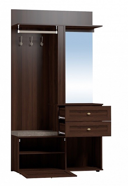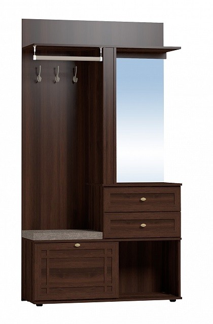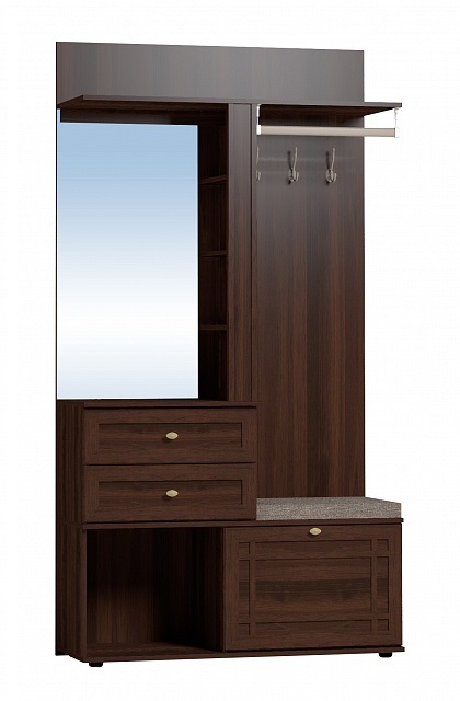 Шкаф МЦН Шерлок 70 - прекрасное решение для организации хранения в малогабаритной прихожей. Несмотря на компактный размер, 112 см в ширину и 40 в глубину, в модели сочетается все необходимое для грамотного планирования входной зоны. Открытая вешалка с крючками и стационарной штангой, полки и ниши за глухими фасадами, ящики и зеркало с подсветкой, которая включается при помощи аккуратного кнопочного выключателя.Штанга выдерживает нагрузку до 25 кг. Уличную и домашнюю обувь Вы сможете разместить в открытой секции под ящиками и закрытой нише за откидной дверцей. Мягкое сиденье входит в комплект и добавляет комфорта при ежедневных сборах на улицу. Шерлок 70 имеет универсальную сборку и может собираться как на левую, так и на правую сторону. Особенности ЛДСП 16 мм, профиль МДФ, кромка ПВХ зеркало 4 мм, проклеенное специальной защитной пленкой декор "орех" с древесной текстурой шариковые направляющие полного и бесшумного выдвижения на ящиках встроенная подсветка регулируемые опоры, скрывающие неровности напольн
