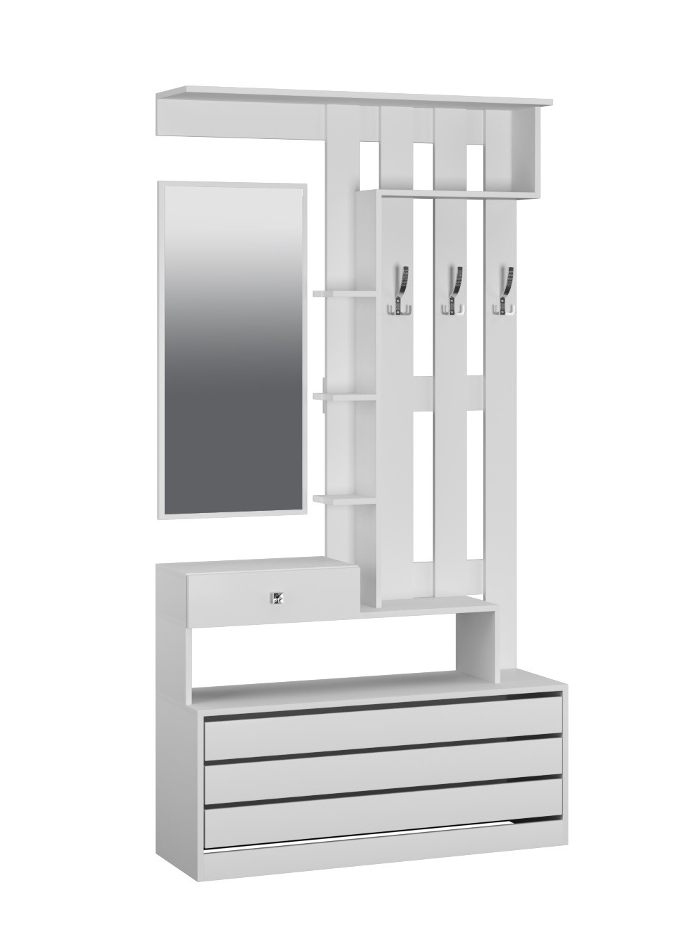 Если пространство Вашей прихожей не позволяет расположить много мебели, советуем обратить внимание на секцию из коллекции Ямайка. Модуль уникален по своей функциональности и содержит нишу для обуви с откидной дверцей, выдвижной ящик для мелочей, открытую вешалку с 3-мя крючками, полку-антресоль, набор открытых полок и зеркало. Ширина в 110 см позволит Вам расположить секцию даже в малогабаритной прихожей. Особенности компактный размер трендовый декор функциональное наполнение