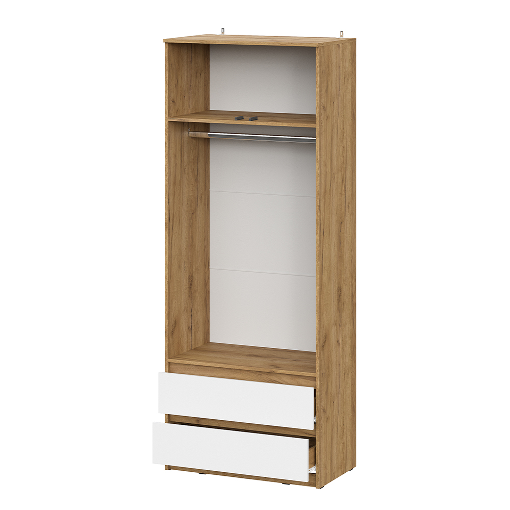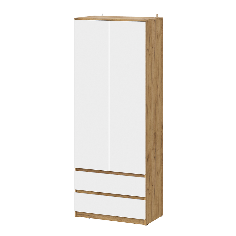 Шкаф Денвер с распашными дверьми и двумя ящиками - это идеальный выбор для тех, кто ищет стильную и функциональную мебель для своего дома. За распашными дверцами скрыты полки и штанга для одежды. Шкаф имеет два выдвижных вместительных ящика для хранения необходимых вещей. Цвет дуб золотой/белый выглядит стильно и практично, а благодаря своей универсальности, он подойдет для любого современного интерьера. Особенности: - Материал корпуса: ЛДСП - Материал фасада: ЛДСП - Направляющие ящиков: Роликовые - Скрытая фурнитура - Штанга для вешалок в комплекте - Максимальная нагрузка на полки: 10 кг - Максимальная нагрузка на ящики: 5 кг