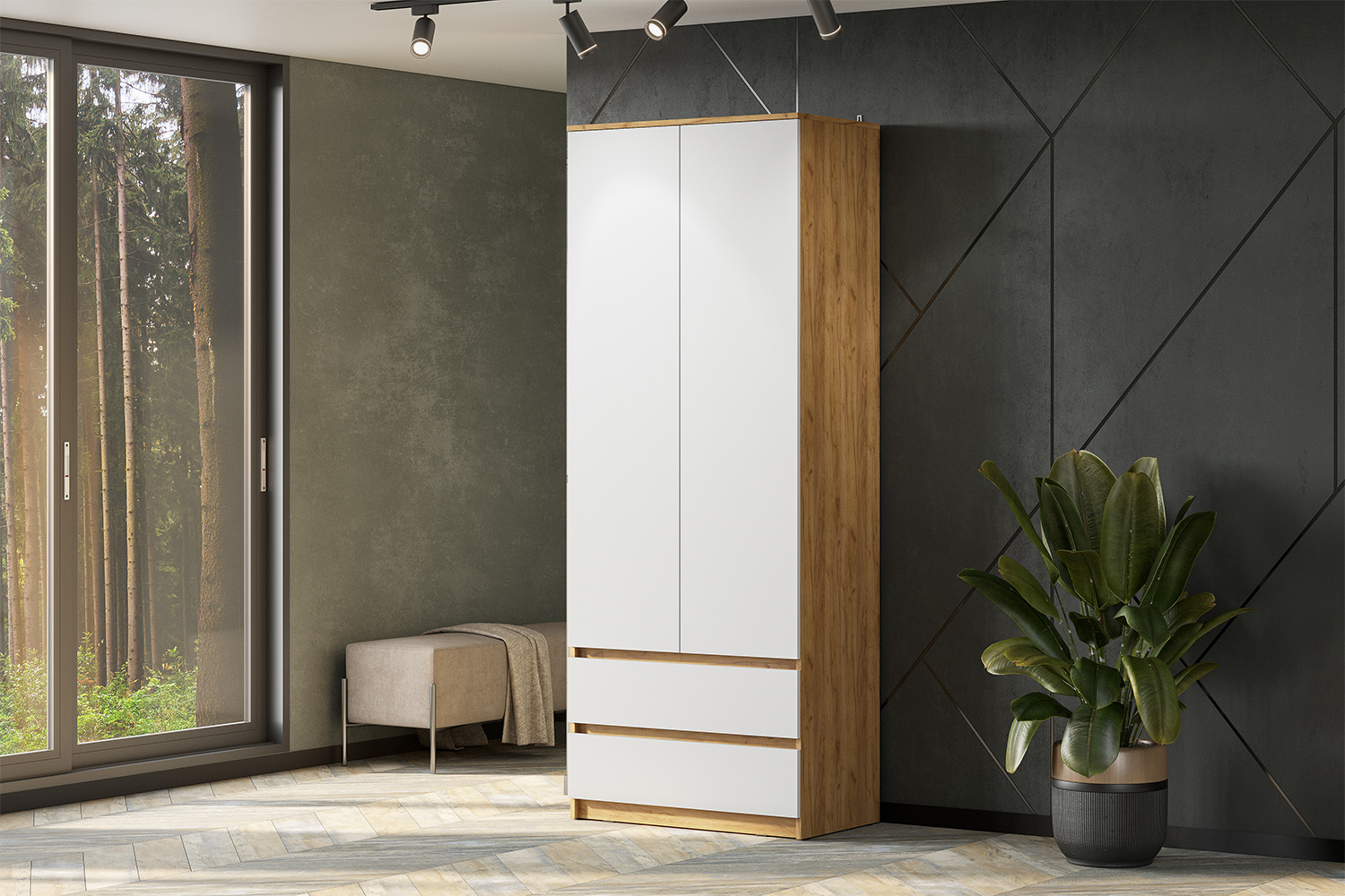 Шкаф для одежды и белья Денвер, Дуб золотой, Белый