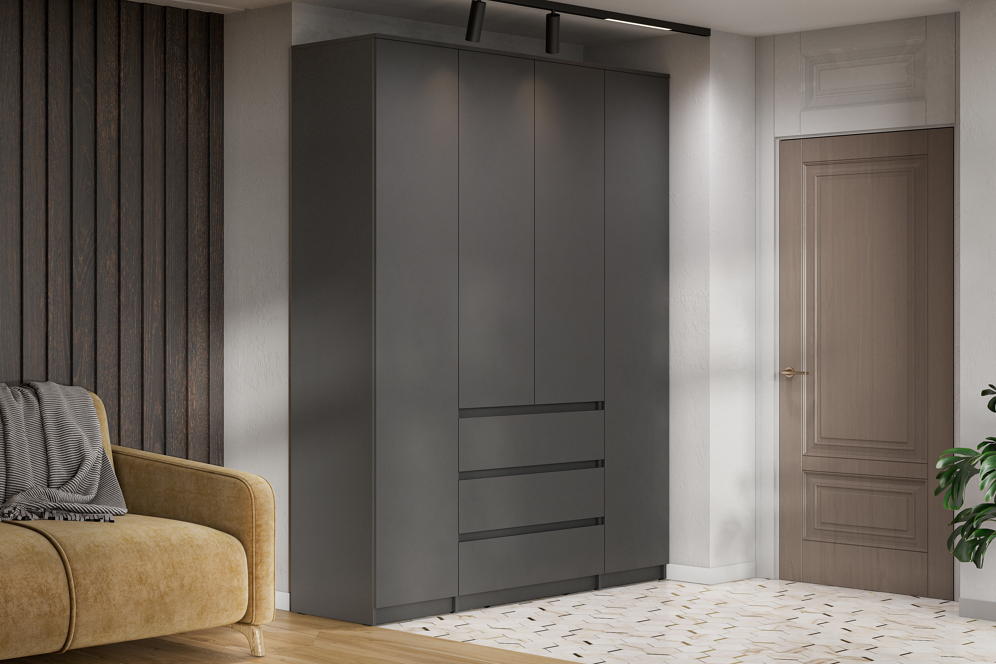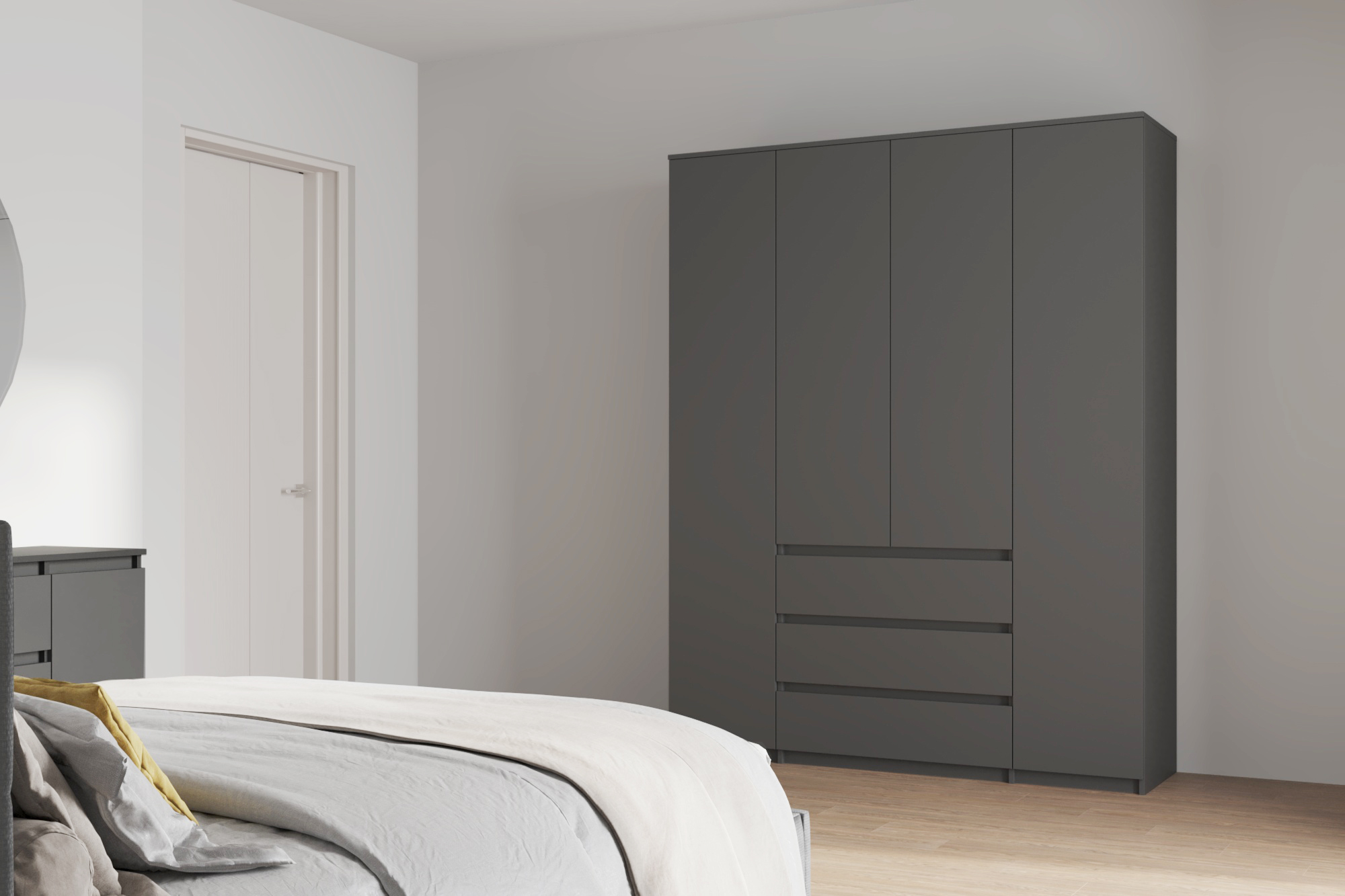 Шкаф для одежды и белья 4х дверный Денвер, графит