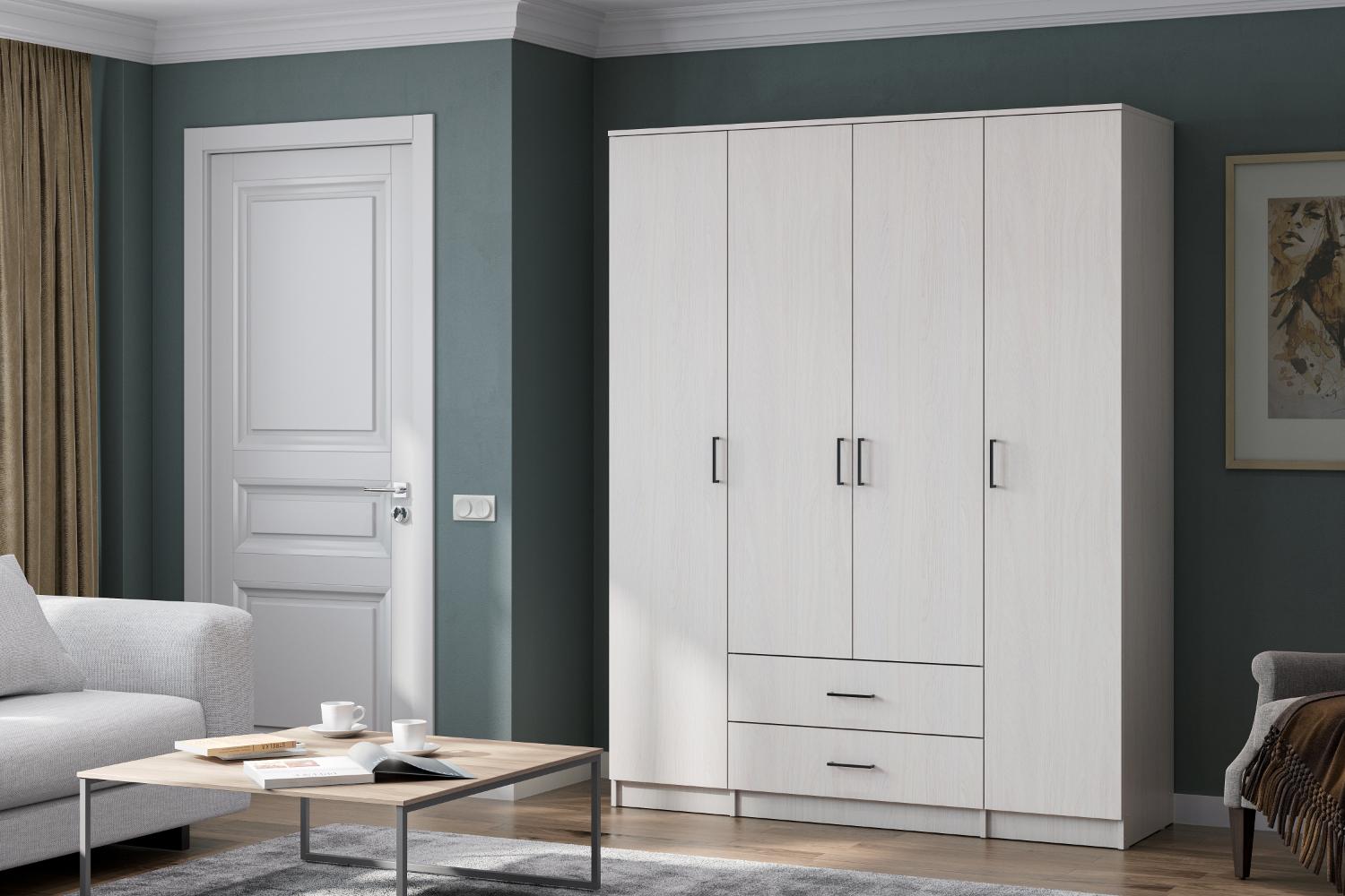 Вместительный шкаф для одежды ШК 1 выполнен в приятном декоре "ясень анкор светлый", имитирующем текстуру древесного спила. За счет габаритов модуль будет отличным решением для организации хранения в просторной входной зоне или спальне. Разноплановое наполнение шкафа позволит Вам разместить все вещи и хранить их в полном порядке: одежду на плечиках на продольной штанге, вещи и другой текстиль в сложенном виде - на полках. Максимальная нагрузка на каждую полку - 5 кг. Два выдвижных ящика пригодятся для белья, аксессуаров и различных мелочей. Тонкие черные ручки добавляют изделию стиля и выглядят оригинально. Особенности — Материал ЛДСП в декоре "ясень анкор светлый" — Увеличенная вместимость — Разноплановое наполнение из стационарной штанги, комплекта полок и ящиков — Роликовые направляющие на ящиках — Тонкие стильные черные ручки