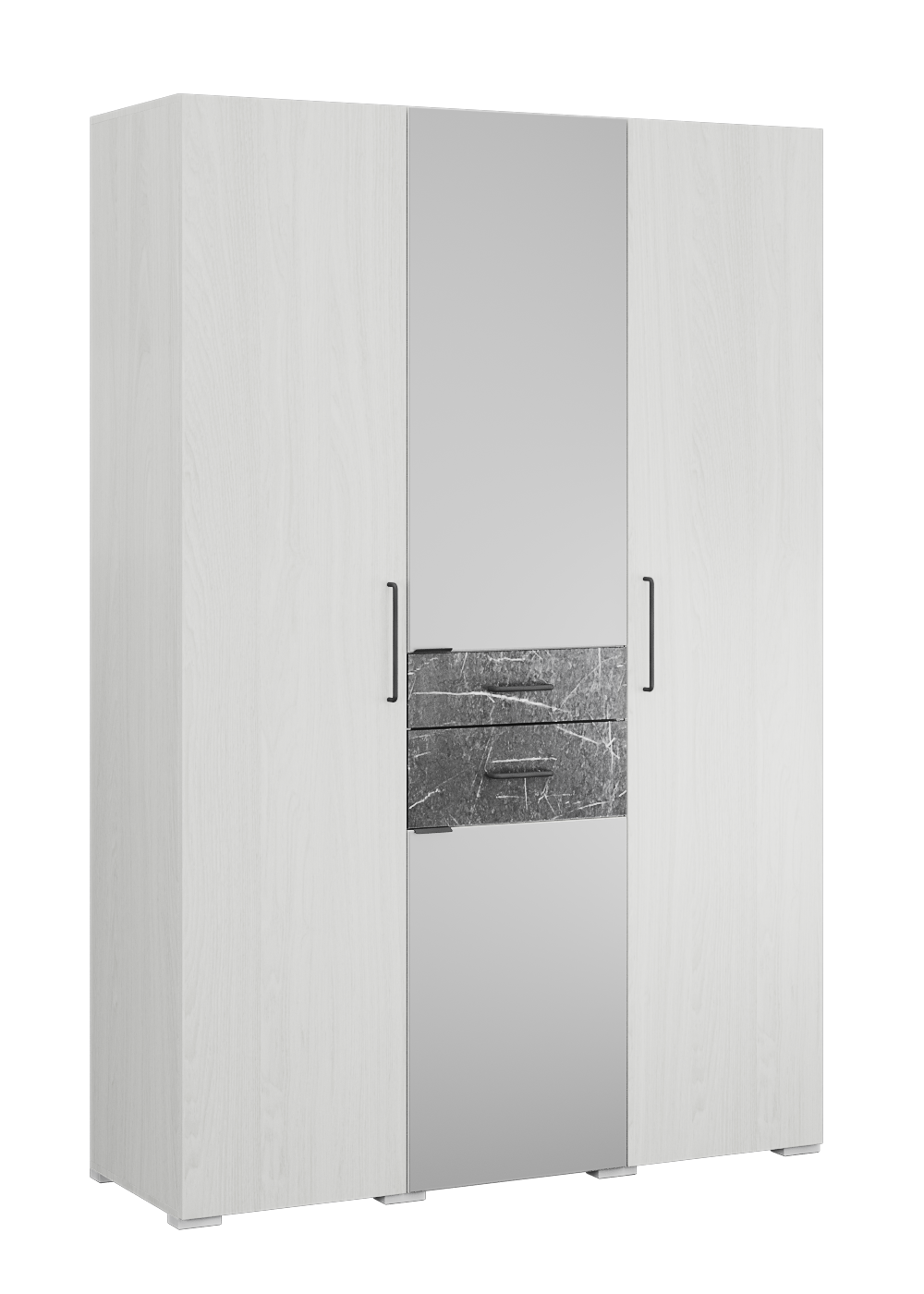Шкаф трехдверныйТеана - отличный вариант организации хранения одежды в спальне. Полностью решит вопрос расположение одежды на плечиках, вещей в сложенном виде и белья. Один из фасадов - зеркальный, визуально расширит пространство и сделает комнату свежее. Характеристики: Размер, мм: 1500х2200х500 Материал: ЛДСП/МДФ/Зеркало Цвет: Ясень анкор светлый/Мрамор дарк Особенности: трендовый дизайн хорошая вместимость разноплановое наполнение комбинированный зеркалом фасад