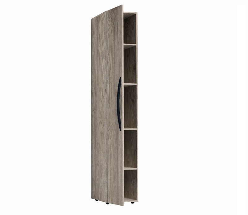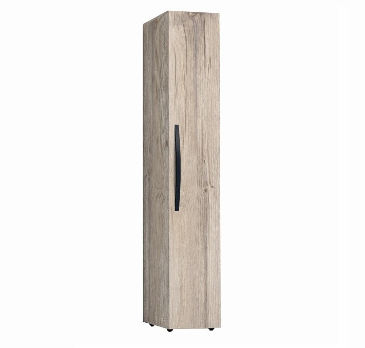 Высокий и глубокий шкаф-пенал для белья позволит максимально полезно использовать квадратные метры маленькой спальни. На 4 полках, регулируемых по высоте, можно легко разместить постельное белье, теплые одеяла и подушки. Гладкие фасады и натуральный декор шкафа привнесут в комнату особый уют и теплоту. Увеличить площадь полок или, наоборот, вписать шкаф-пенал в имеющееся пространство можно благодаря услугеШирина ВРАЗМЕР: измените ширину шкафа на 150 мм с шагом в 1 мм в сторону увеличения или уменьшения. Особенности ударопрочная кромка ПВХ 2 мм крепится на стену за подвесы регулируемые опоры полки регулируемые по высоте выдерживает нагрузку до 12 кг гнутая ручка в винилискоже