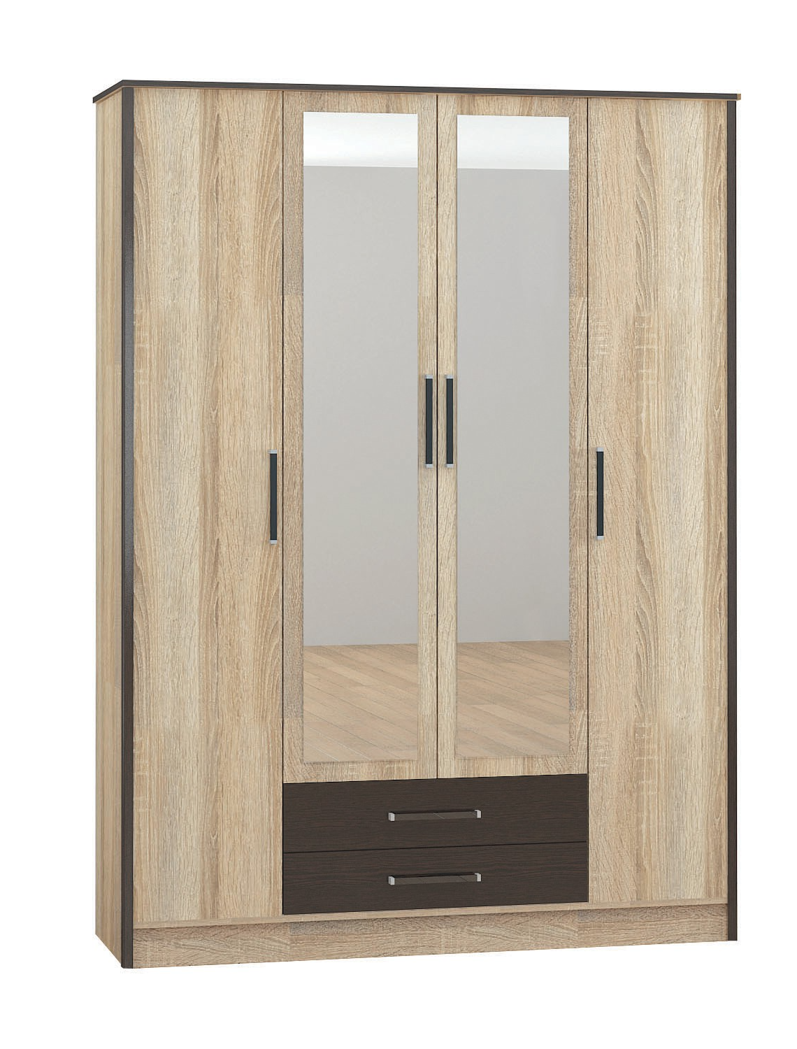 Четкие геометрические формы, отсутствие лишних декоративных элементов, никакой перегруженности деталями - все это о спальном гарнитуреЛирика. Универсальность стильной модели придает и цвет исполнения, натуральный и приятный, который подойдет к абсолютно любой комнате, и подобрать текстиль к нему не составит труда. Материал:ЛДСП Цвет:Дуб Венге, Дуб Сонома