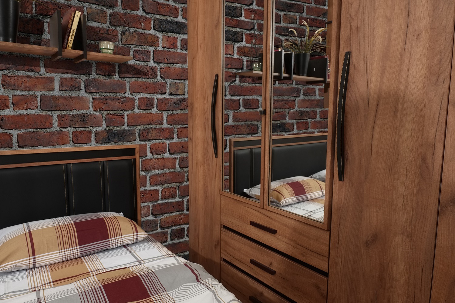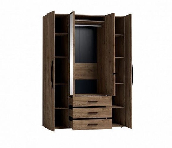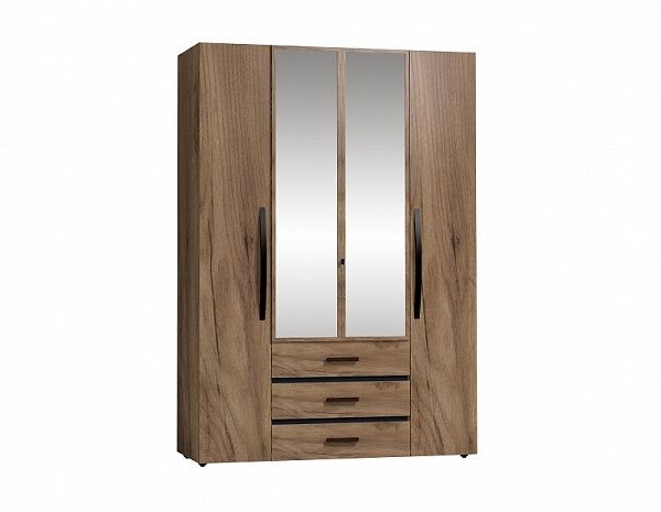 Вместительный распашной шкаф красивого древесного оттенка с 2-мя зеркальными фасадами прекрасно подойдет в небольшую спальню. Функциональное наполнение шкафа разделено на две симметричные половины, что очень удобно для пользования и зонирования гардероба всех членов семьи. За глухими фасадами скрываются отделения с 4 полочками, регулируемых по высоте, что делает хранение одежды и аксессуаров крайне удобным. Зеркальные фасады шкафа обрамлены вставками из ЛДСП. Изнутри зеркало покрыто специальной защитной пленкой, которая предотвратит падение осколков, если оно разобьется. Элегантная ручка-петля позволит открывать дверцу, не прикасаясь к зеркальному полотну, а, значит, его не придется часто протирать. Вторая зеркальная дверца открывается за свес. Внутри шкафа закреплена стационарная штанга (777 мм), которая выдержит нагрузку в 40 кг. Особенно деликатные вещи, постельные принадлежности и другие предметы быта помогут хранить три выкатных ящика с глубиной 40 см. Ящики оснащены шариковыми направляющими полного выдв