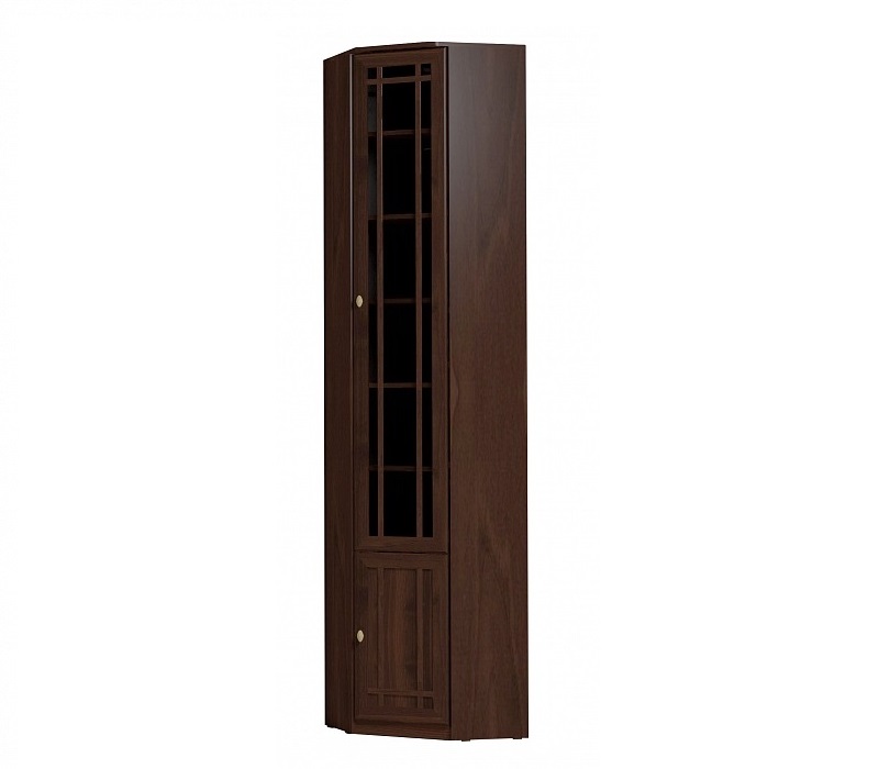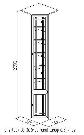 Угловой книжный шкаф - практичное решение для малогабаритных гостиных, библиотек или рабочих кабинетов, где каждый свободный сантиметр важно использовать рационально. Конструкция и габариты шкафа позволят Вам организовать полноценную зону для бережного хранения литературы и сопутствующих вещей. Модуль возможно установить в комнате, высота полотка которой не менее 240 см. Наполнение - комплект регулируемых по высоте полок. Фасад шкафа декорирован тонированным стеклом, свойства которого защитят Ваши книги от вредного воздействия лучей света и загрязнений. Шкаф для книг Шерлок 33 обязательнокрепится к стене за подвесы и межсекционной стяжкой с другими шкафами в комплекте. Особенности ЛДСП 16 мм, кромка ПВХ рамочные фасады из профиля МДФ тонированное стекло 4 мм декор "орех" комплект регулируемых по высоте полок обязательное крепление к стене за подвесы
