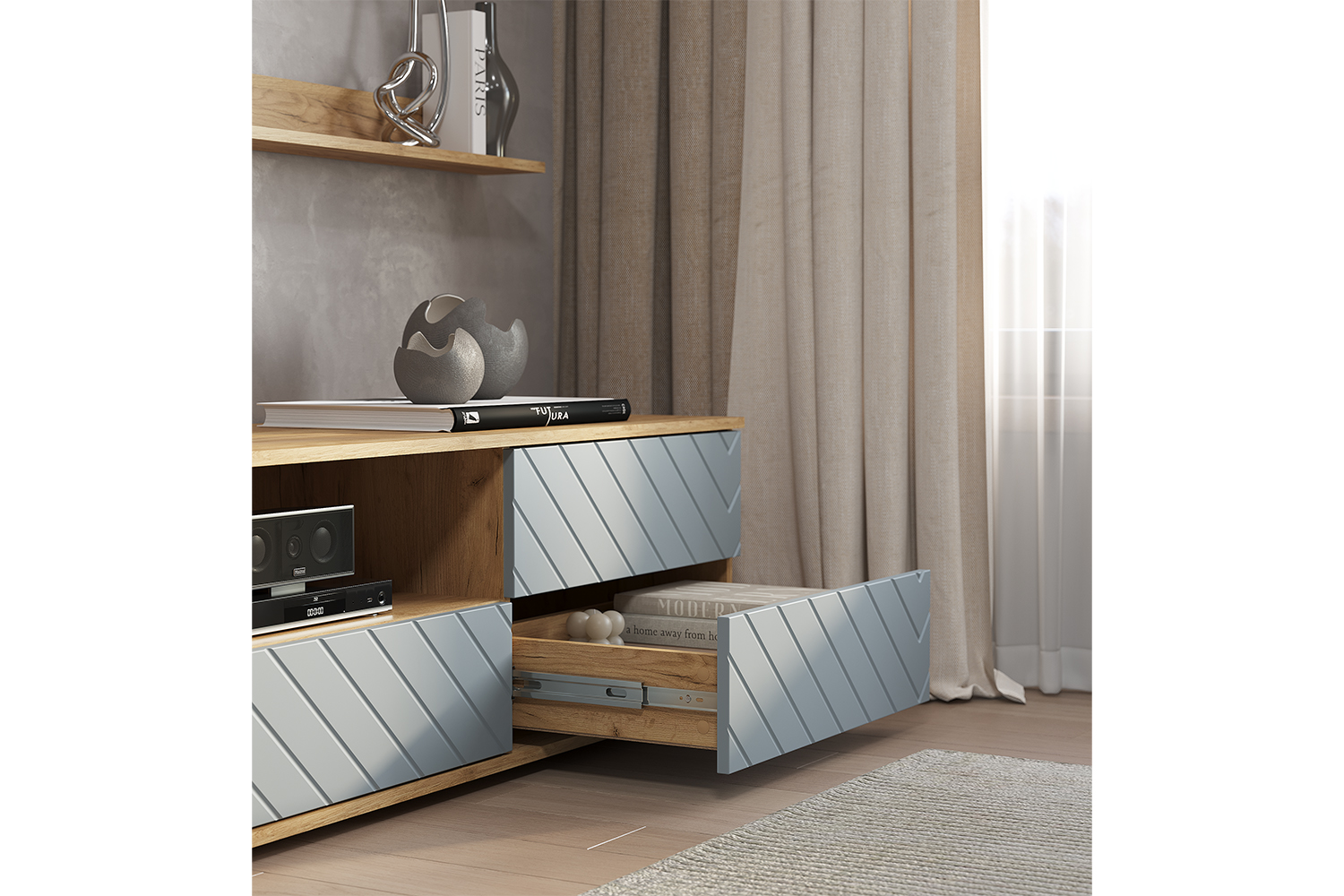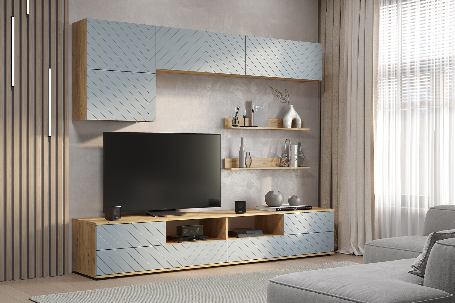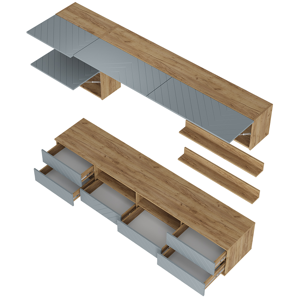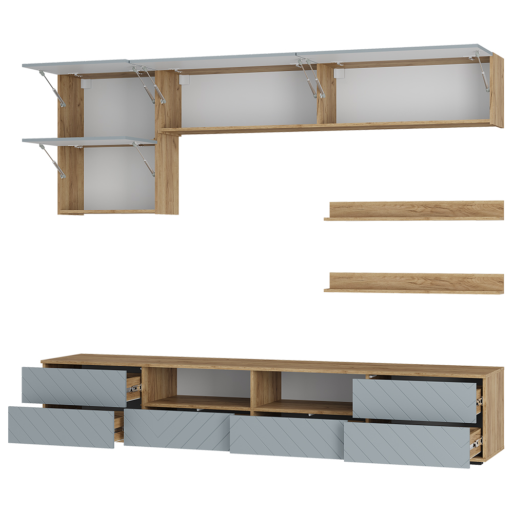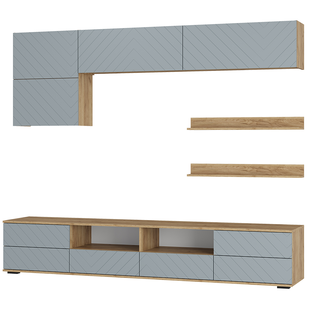 Гостиная Камелия - это комплексное решение для уютной гостиной. Разнообразие вместительных зон для хранения позволяет обустроить комфортную зону отдыха. Эта коллекция выделяется своим элегантным дизайном и многофункциональностью, что позволяет адаптировать ее под индивидуальные потребности. Особенности: - Материал корпуса: ЛДСП, цвет Дуб крафт - Материал фасада: МДФ, цвет Шарли - Направляющие ящиков: Шариковые полного выдвижения 350 мм - Петли створок: накладная без доводчика - Толщина кромки: 0.45 мм - Место под ТВ: 1800×750×450 - Варианты открывания модулей: толкатель с магнитом; за край удлиненного фасада - Опоры: прямоугольные, черные 20 мм - Крепление к стене: Р-образные, L-образный - Максимальная нагрузка на полку: 3 кг - Максимальная нагрузка на выдвижной ящик: 5 кг - Максимальная нагрузка на крышку: 30 кг