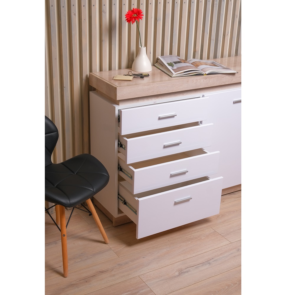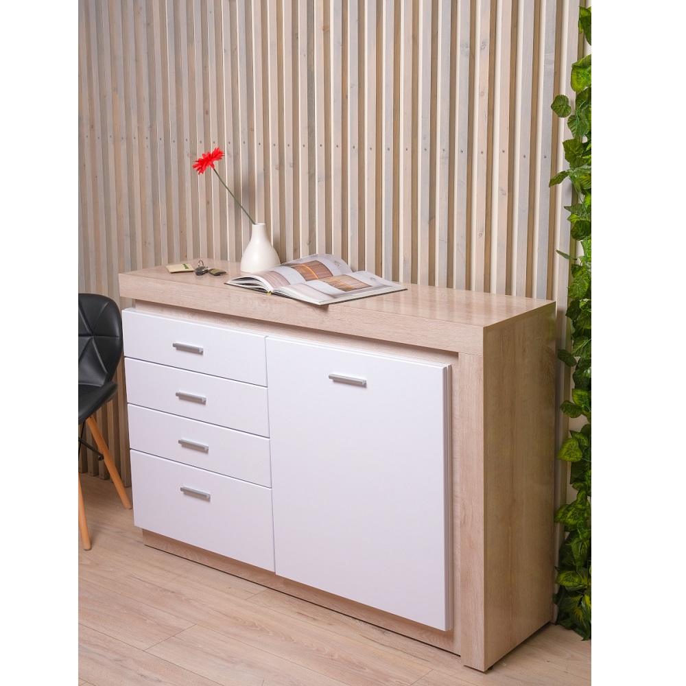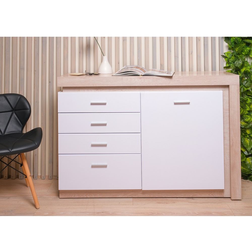 Цвет: Дуб сакраменто/ Белый снег глянец Фасад: МДФ 16 мм Каркас: ЛДСП 16 мм Задняя стенка ДВПО белое ОСОБЕНЕНОСТИ: - Коллекция представлена в следующем цветовом решении: - Корпус ЛДСП 16 мм в декоре «Дуб Сакраменто» и фасад МДФ 16 мм в декоре «Белый снег глянец» - Шариковые направляющие полного выдвижения - Модули комплектуются светодиодной подсветкой (дополнительная платная опция) - Ручки металлические цвет – «Сатин светлый» СБОРКА УНИВЕРСАЛЬНАЯ (правое и левое исполнение)