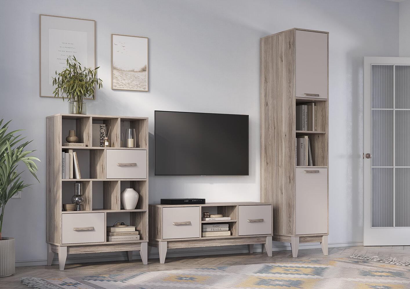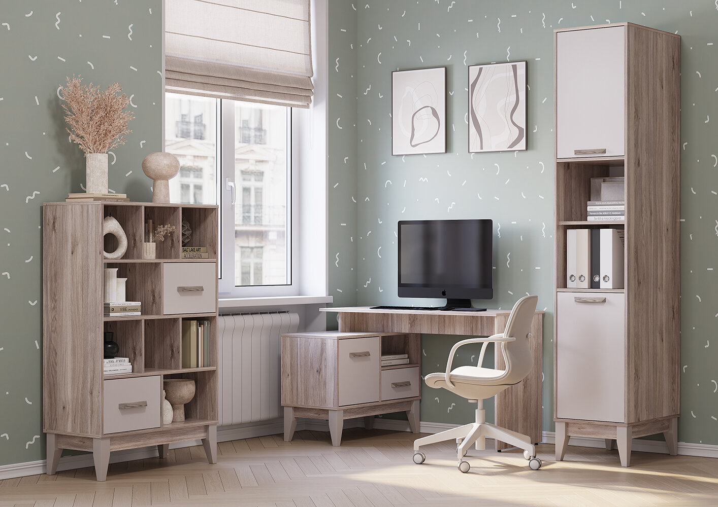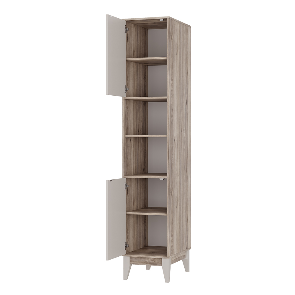 Пенал из модульной серии Скандика состоит из четырех полок, скрытых за дверцами и двух открытых полок, на которых можно разместить книги, документы, предметы декора, игрушки и одежду. Ручки повторяют текстуру корпуса «дуб смоки», а створки плотно фиксируются на магнитах. Особенности: Универсальная сборка. Дополнительные полки к пеналу не предусмотрены. Створки плотно фиксируются на магнитах. Эмалированные деревянные опоры из бука 20 см. Максимальная нагрузка на полку – 10 кг.