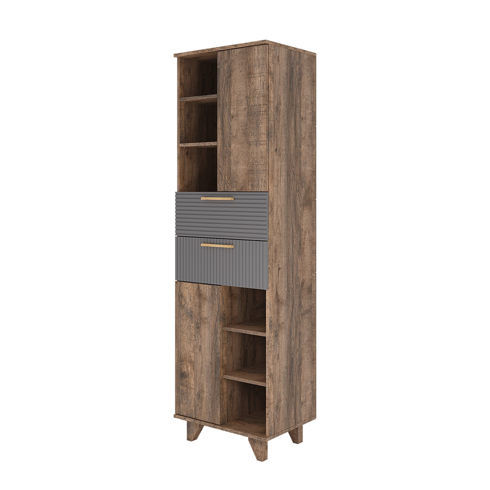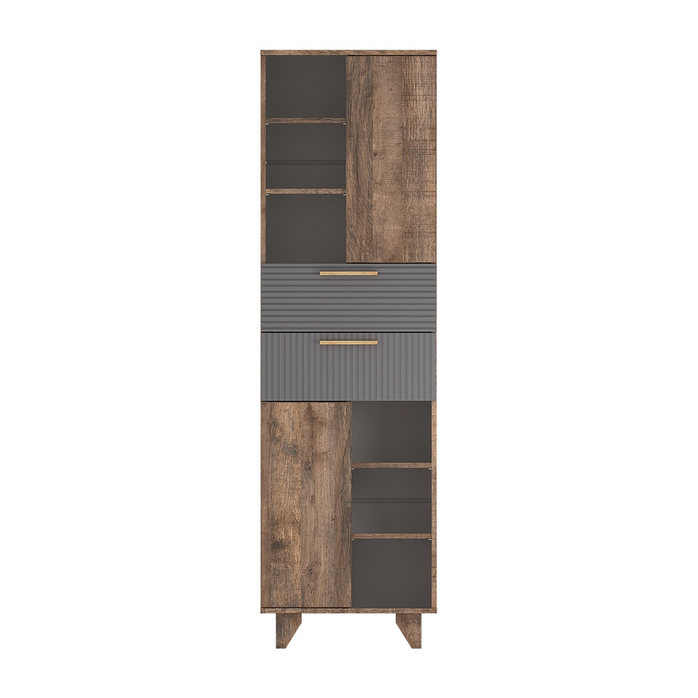 Стеллаж Ньёрд станет отличным решением для организации пространства, предоставляя место для книг, папок с документами, предметов декора и разнообразных учебных принадлежностей. Открытая конструкция с полками добавляет функциональности, а распашные дверцы позволяют удобно хранить более ценные вещи. Особенности: - Материал каркаса: ЛДСП - Материал фасада: МДФ - Способ открывания: Push-to-open - Направляющие ящиков: Шариковые - Максимальная нагрузка на полку: 5 кг - Максимальная нагрузка на ящик: 5 кг - Высота ножек/опор: 10 см