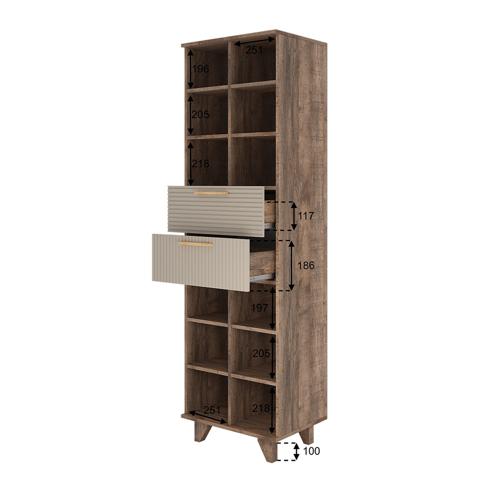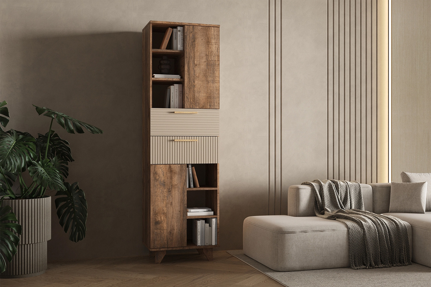 Стеллаж Ньёрд станет отличным решением для организации пространства, предоставляя место для книг, папок с документами, предметов декора и разнообразных учебных принадлежностей. Открытая конструкция с полками добавляет функциональности, а распашные дверцы позволяют удобно хранить более ценные вещи. Особенности: - Материал каркаса: ЛДСП - Материал фасада: МДФ - Способ открывания: Push-to-open - Направляющие ящиков: Шариковые - Максимальная нагрузка на полку: 5 кг - Максимальная нагрузка на ящик: 5 кг - Высота ножек/опор: 10 см