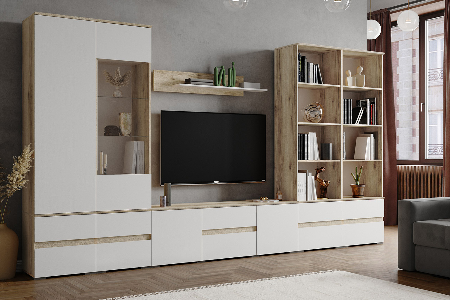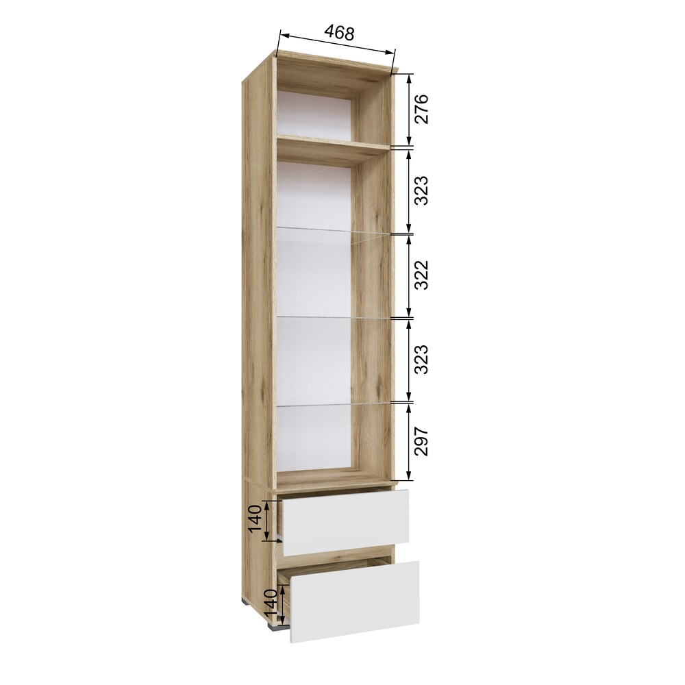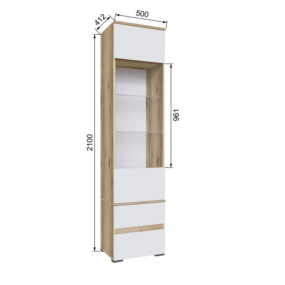 Пенал с витриной Плейона, Дуб Делано, Белый