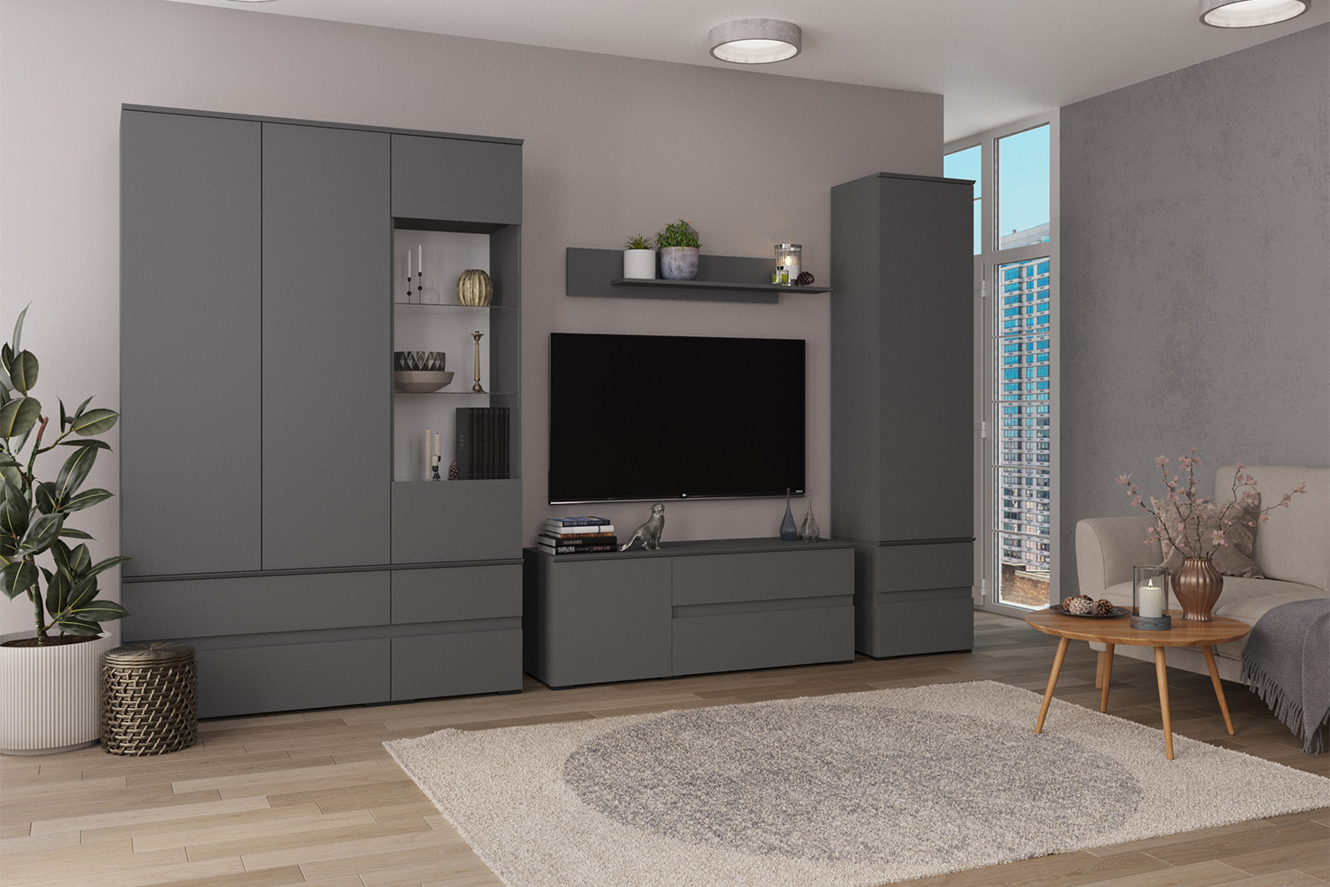 Пенал с витриной Плейона, Графит серый