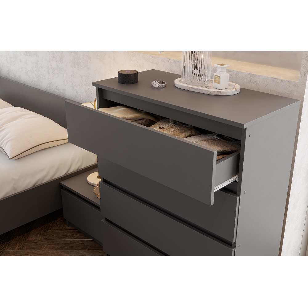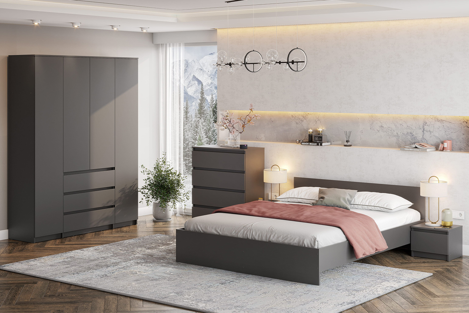 Спальный Денвер графит — это изысканное и стильное решение для обустройства вашей спальни. Цвет графит придает спальне строгий и изысканный вид. Он идеально подходит для создания современного интерьера. Основными элементами спальни Денвер графит являются кровать 160х200 см, две прикроватные тумбочки, шкаф и комод. Гарантия от производителя составляет 24 месяца.