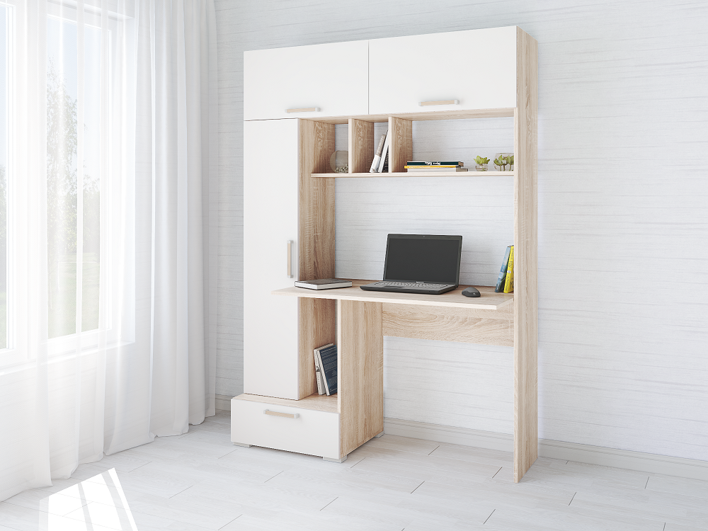 Компьютерный стол Квартет-11 отличается от аналогов увеличенной вместимостью. Модель совмещаетпросторное рабочее место и место для хранения всех необходимых в работе и учебе принадлежностей: книг, канцелярии и личных вещей.Всем вещам хватит места, и храниться они будут в полном порядке. Приятный декор, представленный сочетанием древесных пород и белого цвета, впишется в любой современный интерьер и добавит атмосферности. Особенности декор белый/дуб сонома с текстурой натурального дерева просторная столешница комплект полок сборка не универсальная