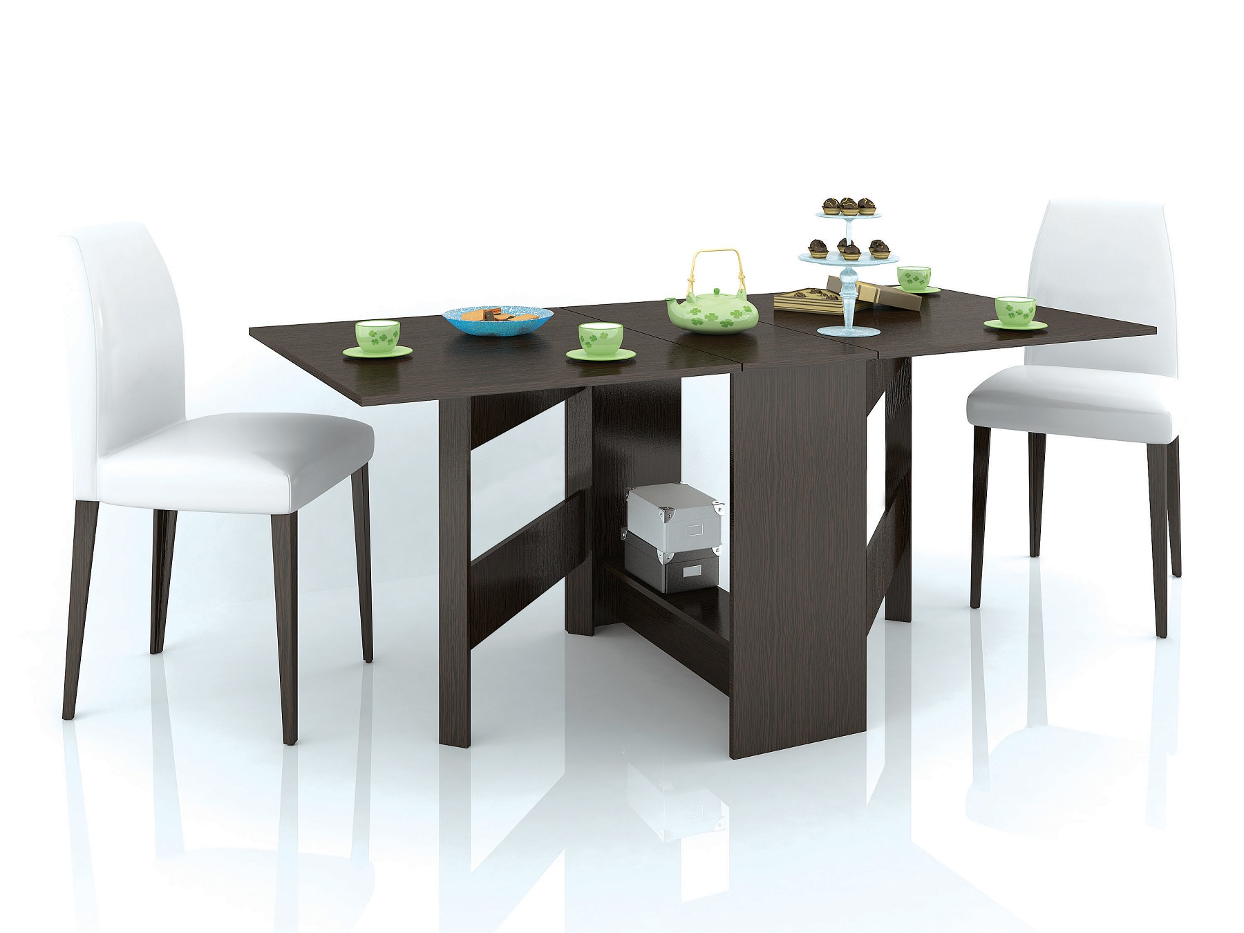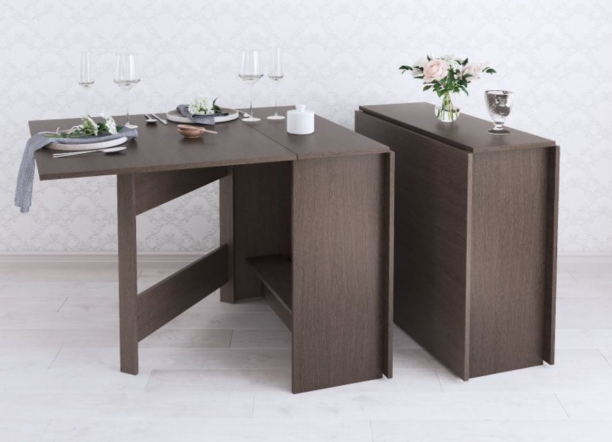 Раскладной стол для кухни - не прихоть, а скорей необходимость в малогабаритках и квартирах-студиях, где каждый метр важно использовать рационально. Данная модель имеет 3 положения: полностью сложенный, разложенный наполовину и полностью разложенный. Модель установлена на пластиковые подпятники, предохраняющие напольные покрытия от повреждения, а значит Вам не нужно бояться поцарапать пол. Особенности выполнен из ЛДСП в декоре венге (с имитацией натурального дерева) компактен в собранном виде имеет просторную столешницу в разобранном комплектуется подпятниками для защиты поверхности пола размер в разложенном виде, см: 85х75х102/174