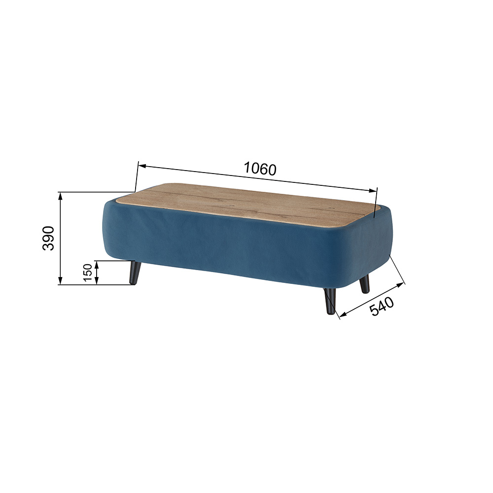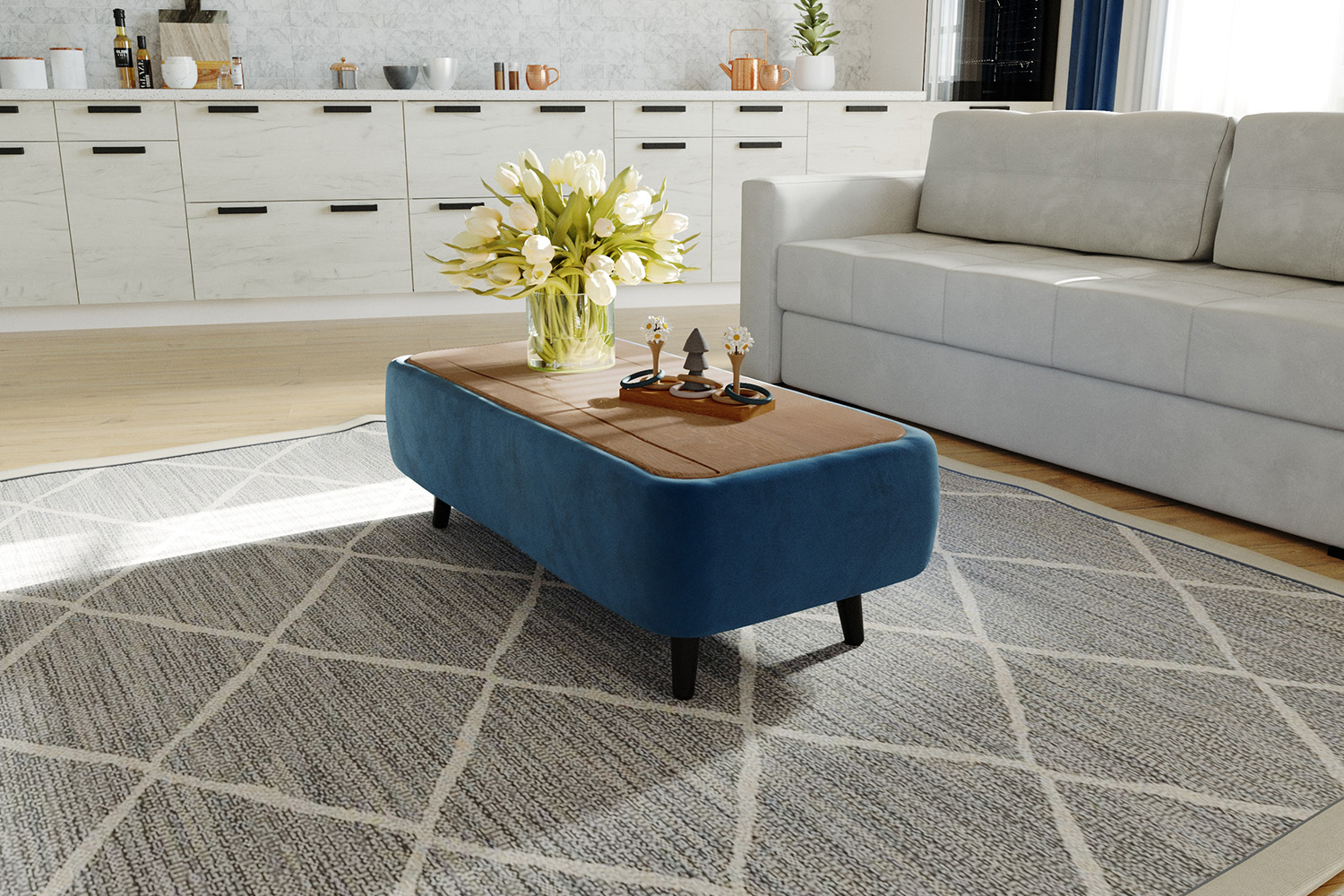 Журнальный столик Пай — это стильный и функциональный элемент интерьера, который часто становится центральной частью гостиной или зоны отдыха. Особенности: - Материал корпуса: ЛДСП - Материал столешницы: МДФ в пленке ПВХ - Материал обивки: Двухслойный плотный велюр - Материал ножек: Массив дерева