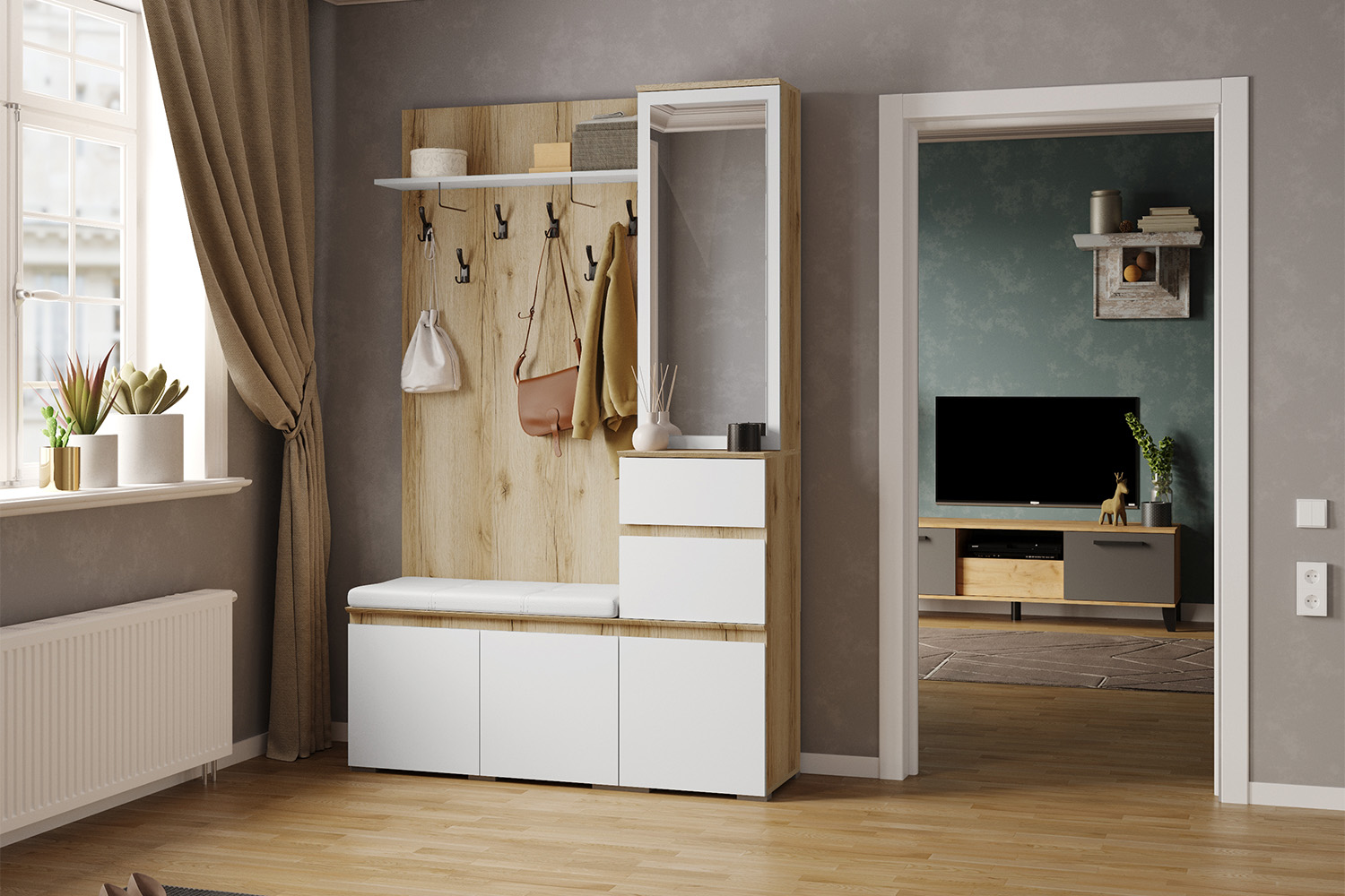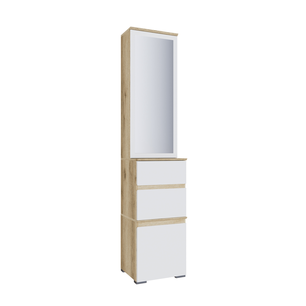 Тумба с ящиками Плейона - удобное стильное решение для прихожей. Тумба оснащена зеркалом, ящиками и закрытой нишей, что позволит с легкостью разместить сезонные аксессуары и обувь в прихожей. Особенности — Материал корпуса: ЛДСП — Материал фасада: ЛДСП — Петли без доводчиков — Отсутствие лицевой фурнитуры — Роликовые направляющие на ящиках