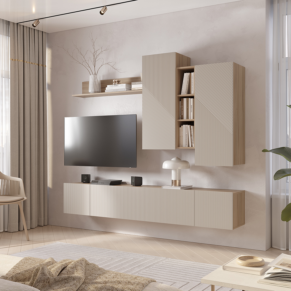 Навесной шкаф Эмилия - это интересное решение для вашей гостиной. За откидными фасадами много места для хранения различных предметов: книг, игровых приставок, аксессуаров. Лаконичные модели из модульной серии Эмилия украшены изысканной фрезеровкой, а приглушенная цветовая гамма легко впишется в современный интерьер. Разнообразие модулей позволит подобрать идеальный комплект для вашей гостиной. Особенности: Крепится к стене при помощи L-образного навеса, откидная створка (размер 1326) на кронштейне секретерном. Распашные створки открываются путем захвата за фасад.