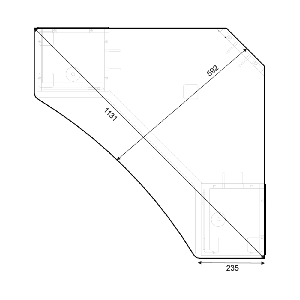 Тумба ТВ-044 (2У) угловая — Фасады из стекла с пескоструйным рисунком — Максимальная распределенная нагрузка на верхнюю крышку тумбы — не более 15 кг — Тумба устанавливается как отдельно стоящая Материал:ЛДСП. Paзмеры:770х800х800х250