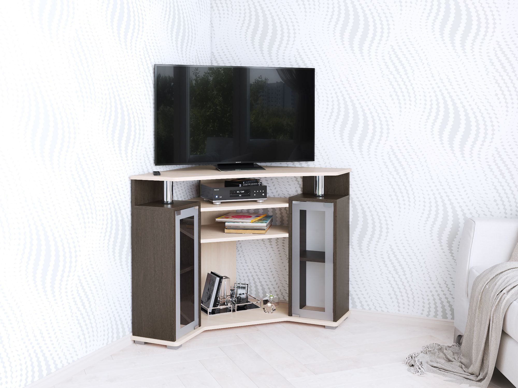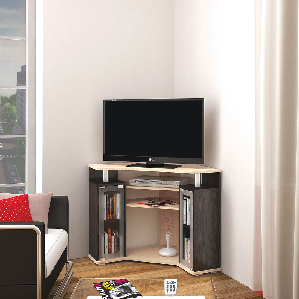 Тумба под телевизор угловая 044 (2у), венге/дуб молочный