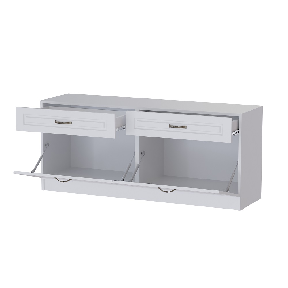 Мечтаете о классической гостиной? Ключевым элементом в ней станет тумба под телеаппаратуру Апполия. Модуль имеет оригинальную конструкцию: два выдвижных ящика пригодятся для хранения журналов и различной мелочовки, за откидными створками хватит места для книг, коробок с вещами и т.д. Особенности корпус ЛДСП белый с тиснением «древесные опоры» фасад МДФ в пленке ПВХ «белый дуб» классические ручки шариковые направляющие полного, плавного и бесшумного выдвижения