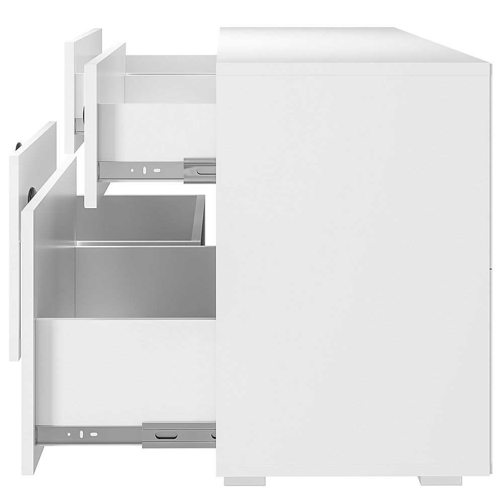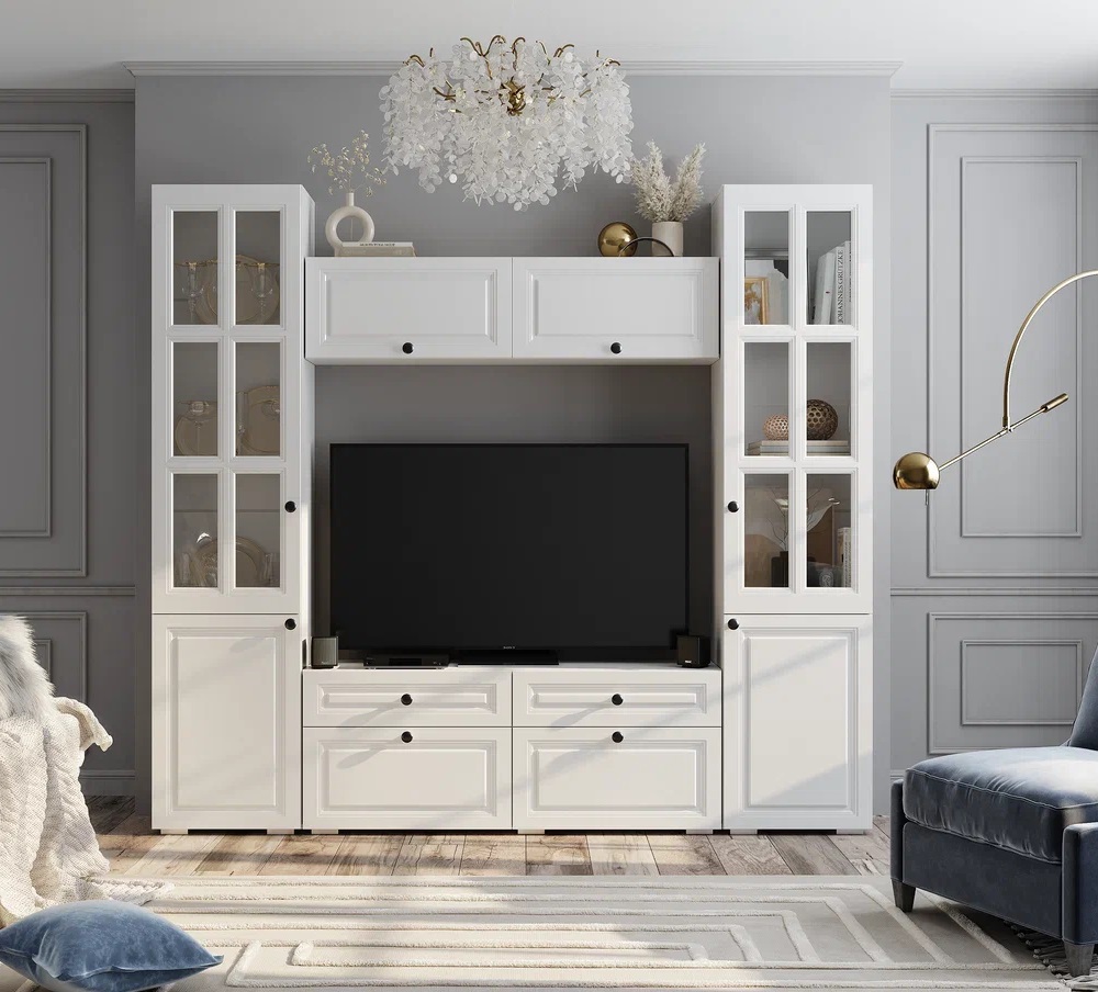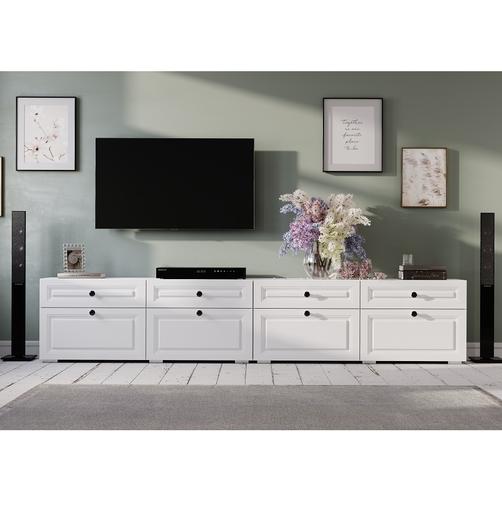 Многофункциональная тумба под ТВ Софт ТБ-07 сочетает в себе комфортную зону отдыха в гостиной и место хранения аксессуаров, приставок и комплектующих для ТВ. Особенности корпус ЛДСП, белый фасад МДФ, эмаль белая задняя стенка - ЛДВП, белая 0,4 мм кромка ПВХ пластик 0,7 мм опоры подпятник, пластик шариковые направляющие плавного движения на ящиках max нагрузка на ящик- 5 кг