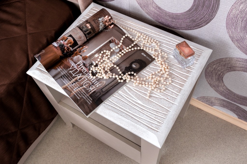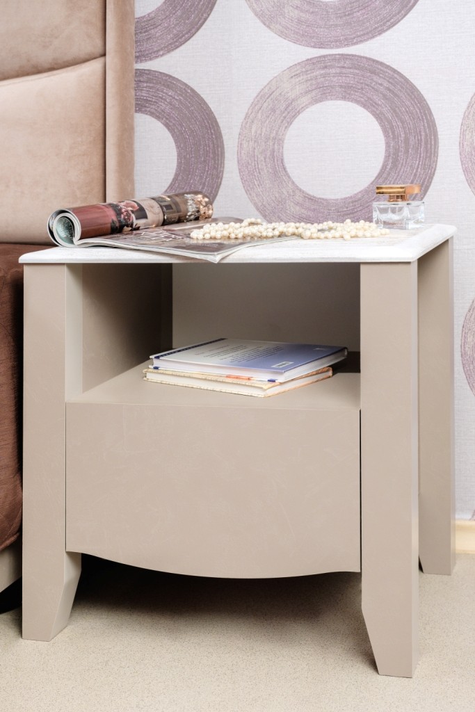 Новый модуль в коллекции Брауни 42 Тумба прикроватная c брашированной столешницей выглядит просто, но в тоже время элегантно. Сочетание открытой и закрытой зон хранения, полки и ящика, - практичное решение, удобство которого ценят многие покупатели. В выдвижном ящичке на шариковых направляющих Вы с комфортом разместите те личные вещи, которые должны быть под рукой перед сном и после пробуждения. Покрытие брашированных поверхностей лаком защищает их от повреждения и продляет срок службы модуля.