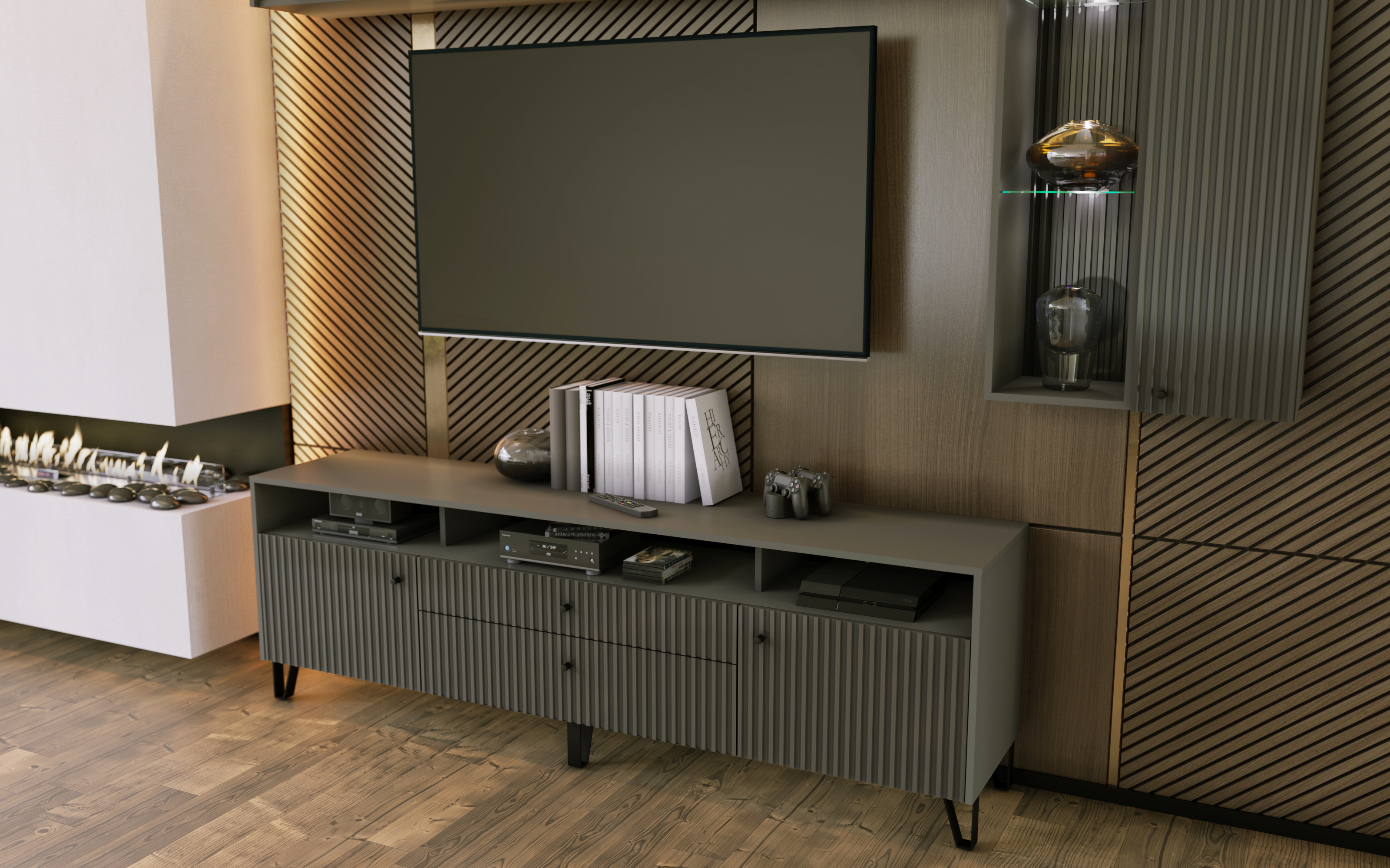 Тумба ТВ Оливия (металл), Графит, Графит глянец